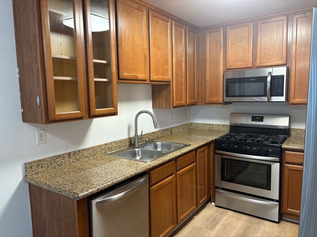 PROPERTY INFORMATION: Welcome to the Lakeshore Villas community in Oceanside. This ground-level unit offers two spacious bedrooms and two full bathrooms, perfect for comfortable living. The kitchen is equipped with modern amenities such as a stove, microwave, refrigerator, and a dishwasher, all complemented by granite countertops. The unit also includes a stackable washer and dryer for your convenience. The laminate flooring throughout the home makes it an ease of maintenance. As part of the Lakeshore Villas community, you'll have access to a community pool, perfect for those sunny warm days. The unit comes with one reserved carport parking space, and water and trash services are included. The location is unbeatable, with Libby Lake Park within walking distance and the Camp Pendleton gates just minutes away. Don't miss out on this fantastic opportunity to call this lovely condo your new home and schedule your showing today! Note: We do not accept 3rd party applications. If you want to apply please visit Chamberlain Property Management website. REQUIRED INCOME: Gross monthly verifiable household income required to qualify for this property: $6,250 LEASE TERMS: 1 Year PETS: Single Pet Only, Cat, Flexible, Dog Under 50 lbs. Note: All pets are subject to owner's approval and usually require an additional security deposit of $250 to $500 per pet and pet rent may apply. FEATURES: Req. Credit Score: 670+ No Co-Signers Minimum 3 years of Positive Rental History or Home Ownership per Applicant Non-Smoking Property Washer (AS-IS) & Dryer (AS-IS) Stove Refrigerator Microwave Dishwasher Patio Living Room Dining Area 1 Story Laminate Flooring + 1 Reserved Parking Space Community Pool Water Included Trash Included Home Owners Assoc. Vertical Blinds SCHOOLS: Elementary School: Libby Elementary Middle School: Chavez Middle School High School: El Camino High School There may be more than one option for schools, please contact School District to confirm. LINK FOR PROPERTY PAGE & APPLICATION: CHAMBERLAIN PROPERTY MANAGEMENT 2653 Roosevelt Street Carlsbad, CA 92008 CalDRE#01979211 Phone (760) 642-HOME Hours Monday - Friday 9am -5pm Saturday 9am - 4pm Sunday CLOSED