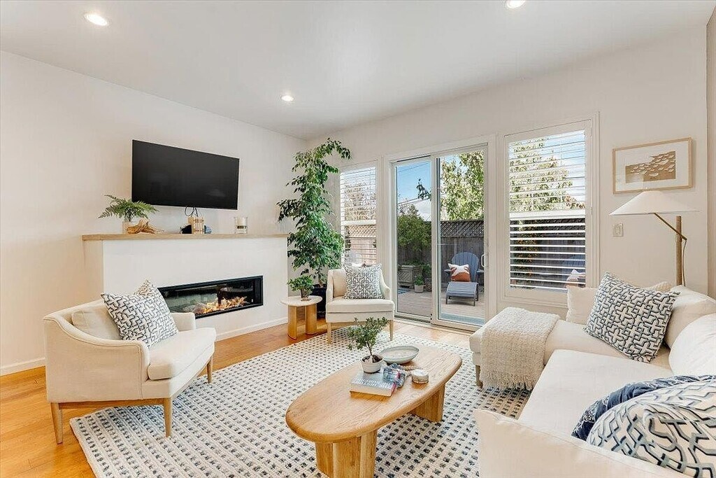 This newer contemporary Craftsman beautifully blends timeless style with modern luxury, tucked away in a quiet enclave of just four homes. Dappled sunlight, privacy, and thoughtful upgrades throughout create a calm, refined coastal retreat—move-in ready and meticulously updated.Interior HighlightsDramatic vaulted ceilings and bright, open living spacesBrand-new solid wood doors with upgraded hardwareFresh interior paint throughoutLuxuriously renovated bathrooms with designer finishesSleek zero-clearance gas fireplace insert in the family roomCustom built-in closet systems in every bedroomHigh-volume whole-home water filtration systemPrimary Suite RetreatSpa-inspired remodeled bathroomCustom floating white oak vanityQuartzite countertopsDeep soaking tubSoft ambient lighting for a serene, hotel-like feelOutdoor LivingSeamless indoor–outdoor flowPrivate garden space ideal for:Entertaining & BBQsRelaxing or gardeningPet-friendly outdoor enjoymentUnbeatable Capitola LocationShort walk to:Gayle’s BakeryCapitola VillageBeach & coastal pathsLocal shops, gym & cafésLive in one of Sunset Magazine’s Favorite Beach TownsLifestyle AppealQuiet, private setting with walkable coastal convenienceHigh-end upgrades rarely found in a rentalPerfect blend of comfort, design & beach-town livingAn exceptional opportunity to enjoy elevated coastal living in Capitola—where modern comfort meets classic charm.