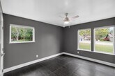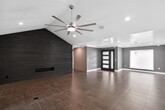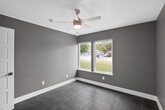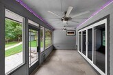 Step into a thoughtfully updated home featuring dark tile flooring, light gray walls, crown molding, and clean modern finishes throughout. The spacious living area is highlighted by vaulted ceilings, recessed lighting, and a large ceiling fan, creating an open and comfortable atmosphere. The kitchen offers a large quartz island, white cabinetry, stone countertops, porcelain backsplash, and a sleek range hood, with a window bringing in natural light above the sink. The bathroom is designed with a glass enclosed shower featuring porcelain surface and dual shower heads for a spa like feel, and the primary bath includes a towel warmer for added comfort. Enjoy the screened porch with ceiling fans and sliding glass doors, perfect for relaxing year round. This unique home also features smart tech throughout, along with hot tub maintenance covered by the owners. The oversized garage includes overhead storage racks, an additional storage room, and access to an external storage building. The expansive yard includes mature trees, a patio, concrete pathways, and a hot tub. Please note that the secondary shed in the back is not for use. Pets ok; limit two; 30lbs or less. MLS ID 6629922
