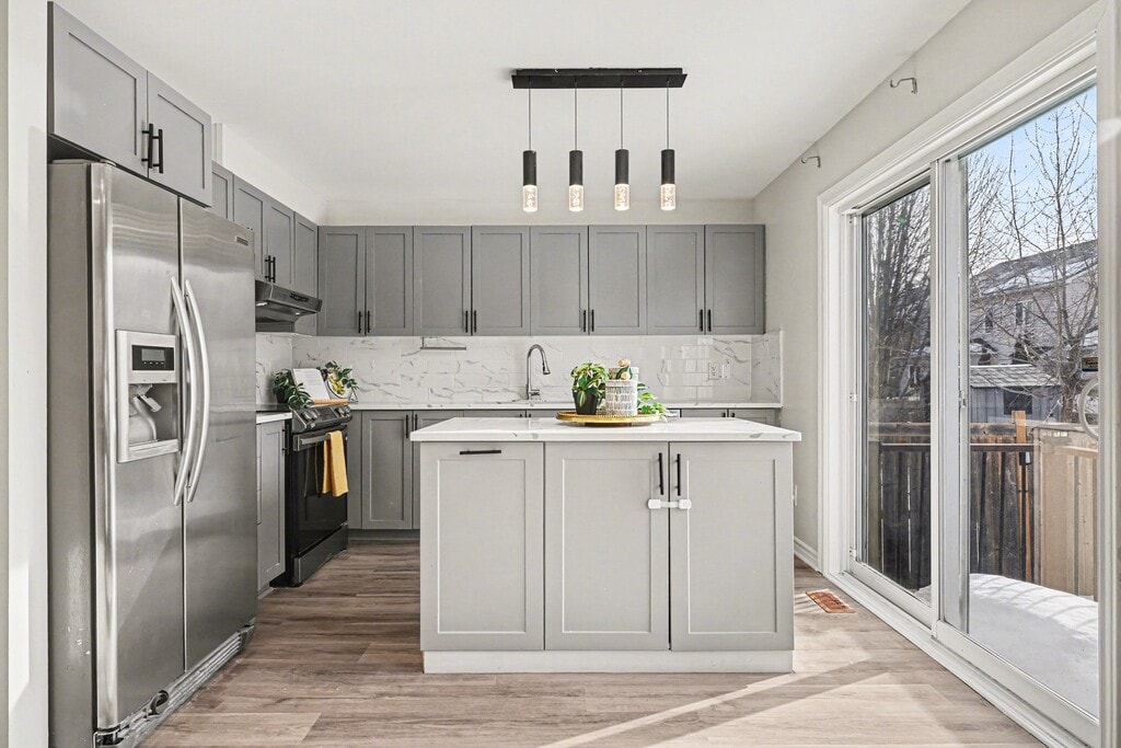 Beautifully updated 3-bedroom, 4-bathroom home in the highly sought-after Chapman Mills community, just steps from top-rated schools, parks, public transit, and everyday amenities. This move-in-ready property features quartz countertops, new flooring, and an extended driveway for added convenience. The bright and inviting main floor offers a spacious living room with a cozy gas fireplace. The kitchen is equipped with stainless steel appliances, ample cabinetry, and two large windows plus patio doors that lead to the fully fenced backyard, filling the space with natural light. Upstairs, a spacious landing offers additional flexible living space, ideal for a small office or reading nook. The primary bedroom includes a large closet and a private ensuite. Two additional well-sized bedrooms and a full bathroom complete the second level. The fully finished basement offers a spacious recreational room plus a utility room with laundry and extra storage. The fully fenced backyard provides plenty of room for relaxing or entertaining. This home perfectly combines comfort, style, and an unbeatable location. Come see it today!