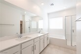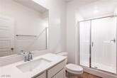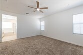 Brand new and never lived in, this stunning NextGen home in Cadence is move-in ready. The private NextGen suite features its own entrance, kitchenette, laundry, bedroom, and living area, perfect for multigenerational living or guests. This 4-bedroom, 4-bathroom residence is thoughtfully designed with a spacious loft upstairs, and every bedroom is connected to a bathroom for comfort and convenience. The primary suite offers beautiful city and strip views, while the backyard provides privacy with no neighbors behind. Modern finishes elevate the home throughout, stainless steel appliances, pantry, luxury vinyl flooring, ceiling fans, epoxy-coated garage floor, water softener and reverse osmosis drinking water system. Outside, enjoy low-maintenance landscaping with pavers, synthetic grass, and desert-friendly plants. Virtual Tour available.
