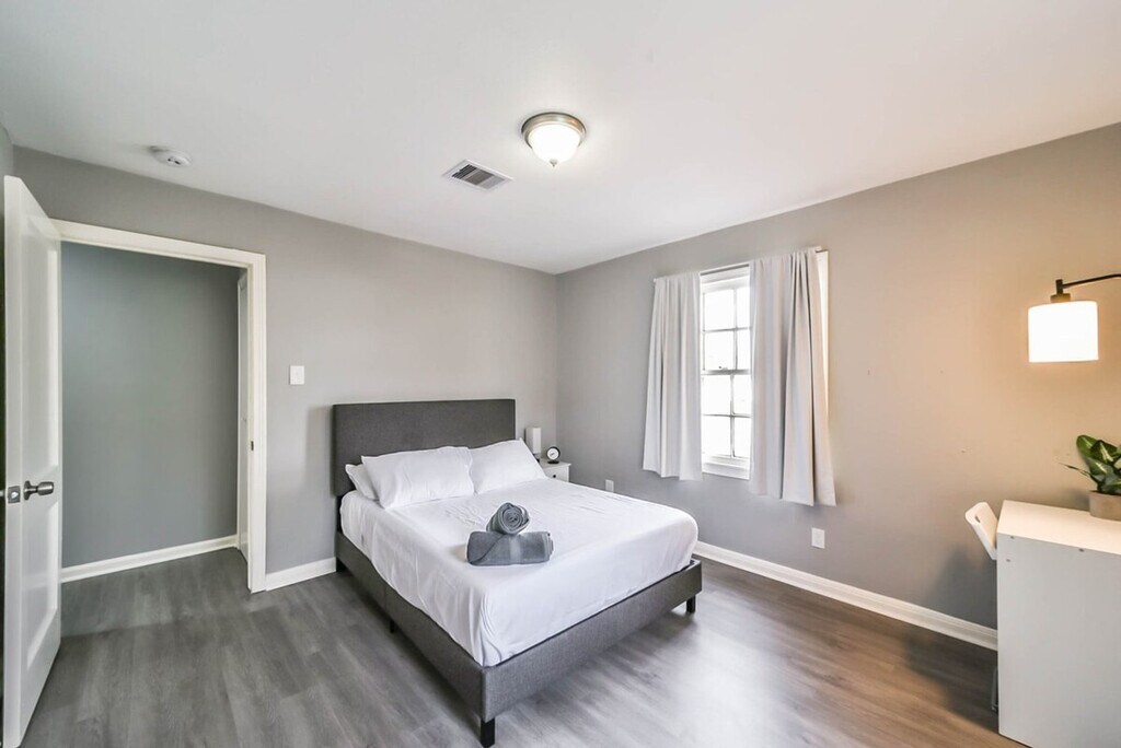 Welcome to Houston! This amazing 5-bedroom, 3-bathroom home is located in a peaceful neighborhood, offering a relaxing retreat after exploring the city. Situated just 10 to 15 minutes from Downtown, NRG Stadium, Minute Maid Park, the University of Houston, the Zoo, Golf Course, and Museums, this home is ideally located for your getaway. Enjoy the beautiful home with family and friends, creating unforgettable moments. The sleeping arrangements of this single-level home include a king bed in the primary bedroom, queen beds in the second, third, and fourth bedrooms, and two twin bunk beds in the fifth bedroom. The primary bedroom features an en-suite full bathroom, while the second bedroom also has an en-suite full bathroom. A third full bathroom is available for guests. House-trained pets are welcome with a $150 fee per pet. Additional fees apply from the seventh guest onwards, with a $39 fee per guest per night. The fourth bedroom opens for groups of 8 or more guests. This home is located in the Macgregor Terrace subdivision in Harris County, Texas, close to the Texas Medical Center and the University of Houston. The area is abundant with retail stores, restaurants, and grocery stores. For entertainment, the NRG Stadium and Arena offer concerts, rodeos, and sports games, just a few minutes away. The Houston Zoo is a 13-minute drive, Hermann Park Golf Course is 10 minutes away, and the NRG Stadium is 20 minutes by car. Only registered guests are allowed, and no parties or large gatherings are permitted. Indoor smoking is prohibited, with a $500 fine for violations. The hot tub is professionally serviced twice a week during summer and once a week during the rest of the year. Landscaping is done once a week, and there are two security cameras installed outside for security. House rule violations can result in reservation cancellation, no refunds, and loss of deposit. Pest control service is monthly, and high-speed Wi-Fi is available, but there is no cable. [SI]