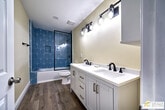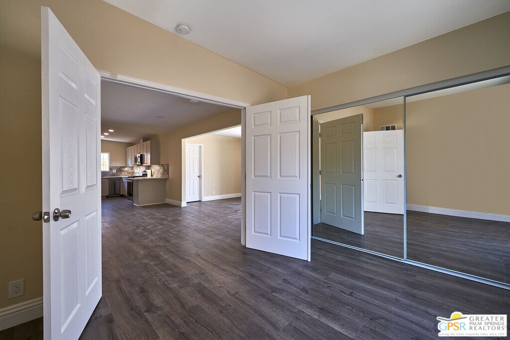 Totally remodeled interior from floor to ceiling! Single-story 3 bedroom, 2 bathroom with attached garage located in the sought-after Cove neighborhood, in the northern portion of the of the magical La Quinta desert community, right next door to La Quinta Community Park with recreational pool, playgrounds, tennis and pickleball courts, shopping and retail. Fresh, new construction that includes engineered wood flooring throughout, new appliances, new quartz counter tops, new cabinets, new flush-mount recessed lighting, new stone subway tile back splash, new dual-sink vanity, new subway and mosaic tile shower, and new interior and exterior paint. Separate inside laundry room. Central AC and heat. New large concrete patio off of back french doors. Mature citrus tree and drought tolerant landscaping. MLS# 25598837PS