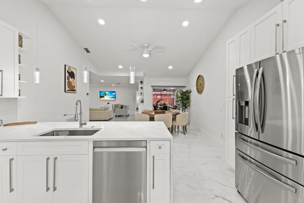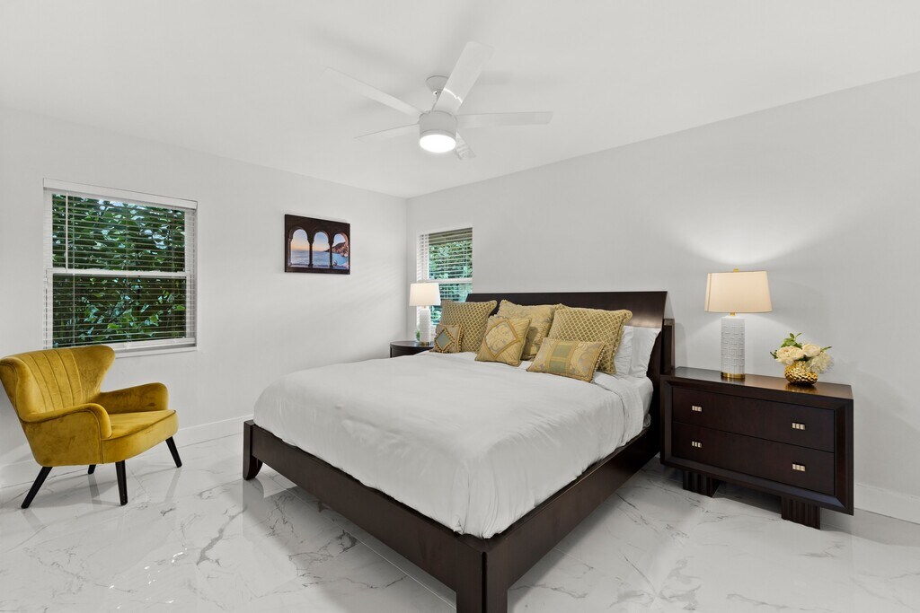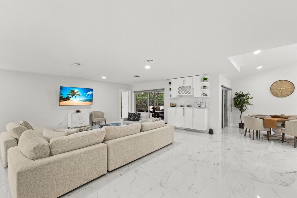 Fully furnished, turnkey 3BR/2BA single-story home available for annual lease in Delray Beach. Available March 15, 2026. Complete top-to-bottom remodel offering 3,064 total SF with 1,968 SF of living space on a 0.22-acre lot. Bright open layout with updated kitchen and baths, tile flooring throughout, and excellent indoor-outdoor flow. Move-in ready with all furniture, linens, dishes, glassware, and cookware included. Large screened & covered lanai overlooks a private fenced backyard. Rent includes lawn care, high-speed Wi-Fi, security package with exterior motion cameras (front/back/patio), plus electric & water. 2-car garage + driveway parking. Pets welcome with $250 deposit. No HOA or approval delays - fast, easy move-in. Close to shopping, dining and downtown Delray Beach.