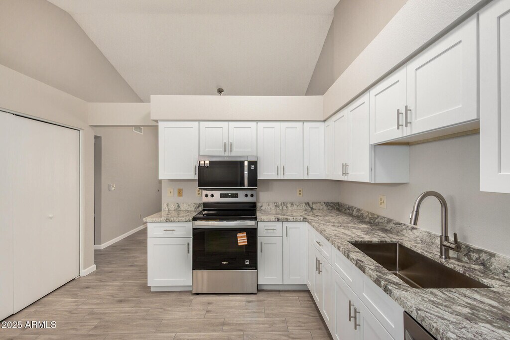 This unit has just undergone a 60 day renovation that you'll be proud to show your fussiest clients. Everything has been done. Top to bottom starting with new roof,new decorating,new windows,new kitchen cabinets and all new appliances,new pantry/laundry room cabinets and appliances,all new light fixtures,including light/fan fixtures on remote in all bedrooms and living room. New bath cabinets/sinks/faucets and shower fixtures. Newer HVAC and HW heater. No expense has been spared. Absolutely must see. Unit comes with one covered and one uncovered parking space. Lovely community and neighbors. Features 3 pools and large play area. Great location near everything a resident could want or need.