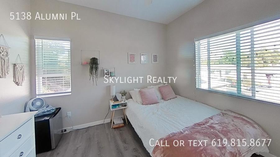 Now Leasing for 2025! 4 Bed and 2 Bath Home at 5138 Alumni Place - Single family home near SDSU Book a Tour: We'd love to show you around! Call us at , or copy and paste to schedule a tour. Copy and paste link to see the full virtual tour: Property features: -Single family home near SDSU -Washer/Dryer in unit -Dishwasher -All New Appliances -Hardwood floors -No pets allowed. Service animals and ESA's exempt Lease Terms: -12-month lease period -No pets allowed. Service animals and ESA's exempt -$43.60/month per household fee for trash. -All utilities separate from rent. Tenants set up and pay for their own electricity and wifi. $75/month per tenant flat fee for water, sewer, gas & technology fee. APPLICATION PROCESS: 1. All tenants (and co-signers, if applicable) must complete an application. 2. Once approved, a $1,000 initial holding deposit is due to reserve the unit and begin lease preparation. 3. The remainder of the security deposit must be submitted within 1 week or by the due date listed on the lease agreement. 4. Applicants must show a minimum monthly income of 2.5x the rent and a credit score of 650 or higher. Guarantors/co-signers are accepted. Follow Us: Stay updated with more listings by following us on Instagram: @Aztec.Living Listed by Skylight Realty DRE# 02222135 Single family home near SDSU