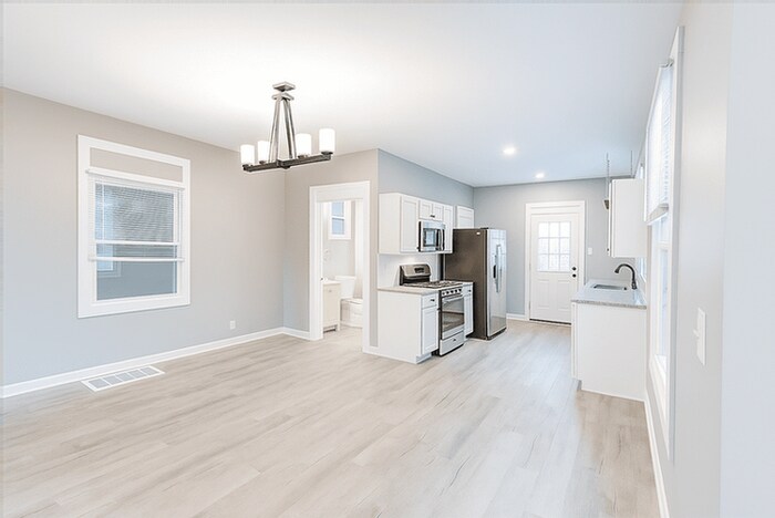 This spacious 2-bedroom, 2-bath home offers a comfortable multi-level layout with a bright dining and family room, outdoor lighting, and a private fenced yard with patio. The kitchen features stainless steel appliances—including refrigerator, stove, dishwasher, and microwave—plus a walk-in pantry for extra storage. The primary bedroom includes a large walk-in closet, and the home also comes equipped with a washer, dryer, garbage disposal, and cable-ready connections. Enjoy year-round comfort with central heating and air conditioning, and take advantage of the full unfinished basement for additional space. Pets are welcome with a pet fee, and tenants are responsible for all utilities, lawn care, and snow removal. Call 1- Minimum qualification requirements: Your household income must be 3 times the amount of rent-Proof of income will be required-No past evictions. Managed by NCDG Realty & Property Management.