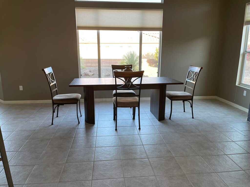 Charming Medford Model residence featuring a spacious living room, kitchen, and dining area. Includes two bedrooms, two bathrooms, and an office/den. The kitchen is equipped with upgraded appliances. Enjoy the large backyard with mountain vistas and gorgeous Arizona sunsets, a covered patio with furniture, and a gas grill. Club House amenities included. Non-smokers.