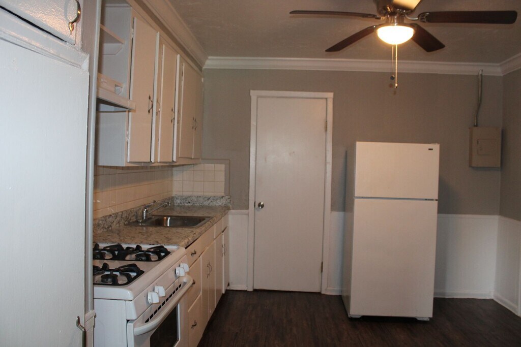 2 bedrooms 1 remodeled bath Freshly painted New flooring Laundry room Central heat & air Stove Refrigerator