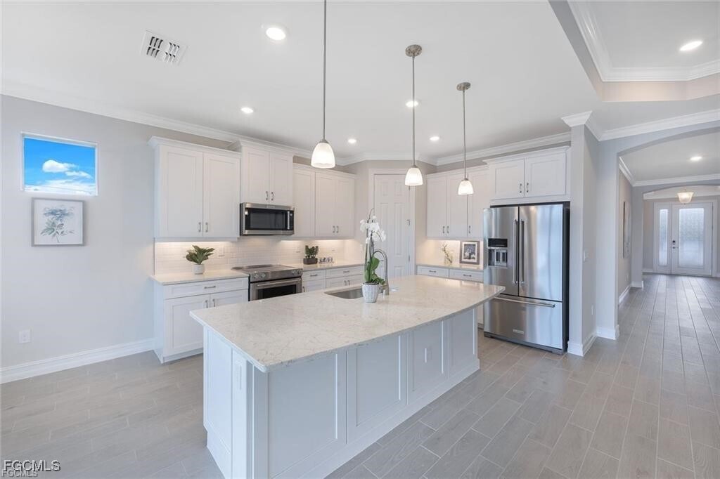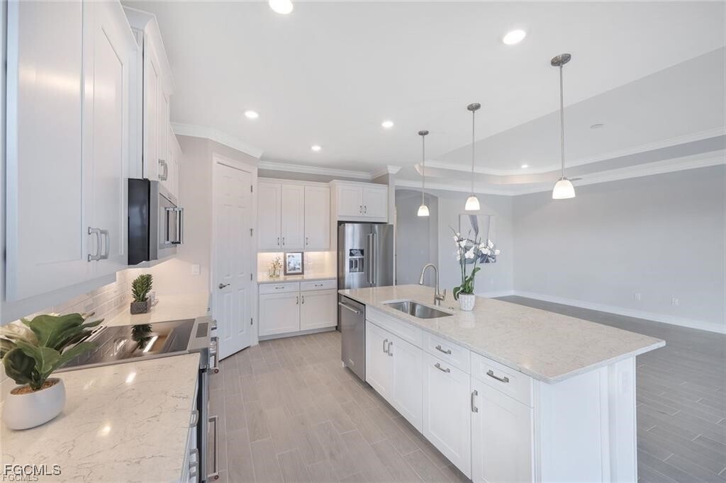 Available January 1,2026,this exceptional unfurnished annual rental offers luxury,space,and breathtaking lake views. Situated on an oversized corner lot,this home provides added privacy and a truly serene setting. This open-concept residence features 3 bedrooms + a versatile den,2 full bathrooms,and two additional half bathrooms,along with an expanded 2-car garage for extra storage or workspace. The thoughtful layout is designed for both comfort and functionality. The gourmet kitchen is a showstopper,featuring white soft-close wood cabinetry,subway tile backsplash,granite countertops,stainless steel appliances,a corner pantry,and a large center island that seamlessly connects to the great room and dining area. Enjoy panoramic lake views right from your main living spaces. The spacious primary bedroom offers a peaceful retreat with beautiful lake views,a HUGE walk-in closet,dual vanities,a separate glass-enclosed shower,and a relaxing garden tub. The guest bedrooms are generously sized,ensuring comfort for family and visitors. Step outside to the newly installed super screen lanai,complete with a brand-new pool and spa,perfect for enjoying warm Florida days,evening sunsets,and year-round outdoor living. The oversized corner lot enhances the outdoor experience with extra space and privacy. Located in Tamarindo,one of South Naples’ newest resort-style communities,residents enjoy top-notch amenities including a resort-style pool,pickleball courts,bocce ball,a state-of-the-art fitness center,and a welcoming clubhouse. Outdoor enthusiasts will appreciate being just minutes from the Picayune State Forest’s trails and recreation areas. The community is ideally situated only a short drive from Naples’ world-famous white-sand beaches,upscale shopping,fine dining,and beautiful Marco Island.