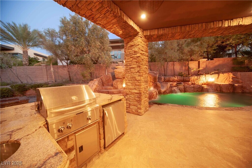 Escape to the epitome of opulence and serenity within the esteemed Macdonald Highlands of Henderson. Immerse yourself in the sheer grandeur of this palatial estate, spanning over 4,500 square feet, adorned with the most exquisite custom woodwork and breathtaking stone finishes. Embrace the utmost seclusion and immerse yourself in a haven of tranquility and refinement. Delight in the symphony of fire and water features, while the resort-style pool beckons you to indulge in pure relaxation. Elevate your entertainment experience with a private theater, bowling alley, basketball court, and two bars. Every corner of this resplendent sanctuary is designed to fulfill your desires. As an esteemed resident, you'll have the option to purchase a membership to the prestigious Dragonridge Country Club. Surrender to a life of unrivaled luxury, where every indulgence awaits. Pool service is additional $280 per month and landscaping is $250 per month.