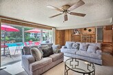 Find your new favorite spot in the suburbs of Chicago with this 4-bedroom, 2.5-bathroom vacation rental. This spacious home offers a fantastic backyard to relax in, featuring a seasonal pool, a hot tub, and an outdoor dining table. Enjoy easy access to downtown attractions like shopping on the Magnificent Mile, dining with a view on the Navy Pier, or sightseeing on the Chicago Riverwalk. After a day of exploring, grab some Chicago-style pizza and unwind in the living room next to the fireplace. With 2,442 square feet of space, this home includes a basement wet bar, free Wi-Fi, and multiple living areas. The bedrooms are well-appointed with a king bed in the master bedroom, queen beds in the second and third bedrooms, and a twin/full bunk bed with a twin trundle in the fourth bedroom, suitable for children. The living room also features a sleeper sofa. The kitchen is equipped with an updated refrigerator with an ice maker and water dispenser, cooking basics, a microwave, dishwasher, toaster, drip coffee maker, kettle, and dishware/flatware. Parking is available with space for two vehicles in the garage, four in the driveway, and additional street parking on a first-come, first-served basis. There is an optional pool heat fee of $50 per night, plus fees and taxes, which must be paid pre-trip and applied to the entire stay. The seasonal private pool is open from May 1 to October 31, while the private hot tub is available year-round. Located in the suburbs of Chicago, this home provides easy access to downtown attractions. Enjoy shopping on the Magnificent Mile, dining on the Navy Pier, or sightseeing on the Chicago Riverwalk, all just a short drive away. This property features step-free entry and keyless access for your convenience. Quiet hours are enforced after 9:00 PM, and there is a strict maximum occupancy of 11 guests. Smoking of any kind, pets, and events or large gatherings are not allowed. The bunk beds are not suitable for adults, and the gazebo is no longer available. Your safety is important, and the property is equipped with two exterior security cameras that are actively recording video and sound. A photo ID may be required upon check-in. [SI]