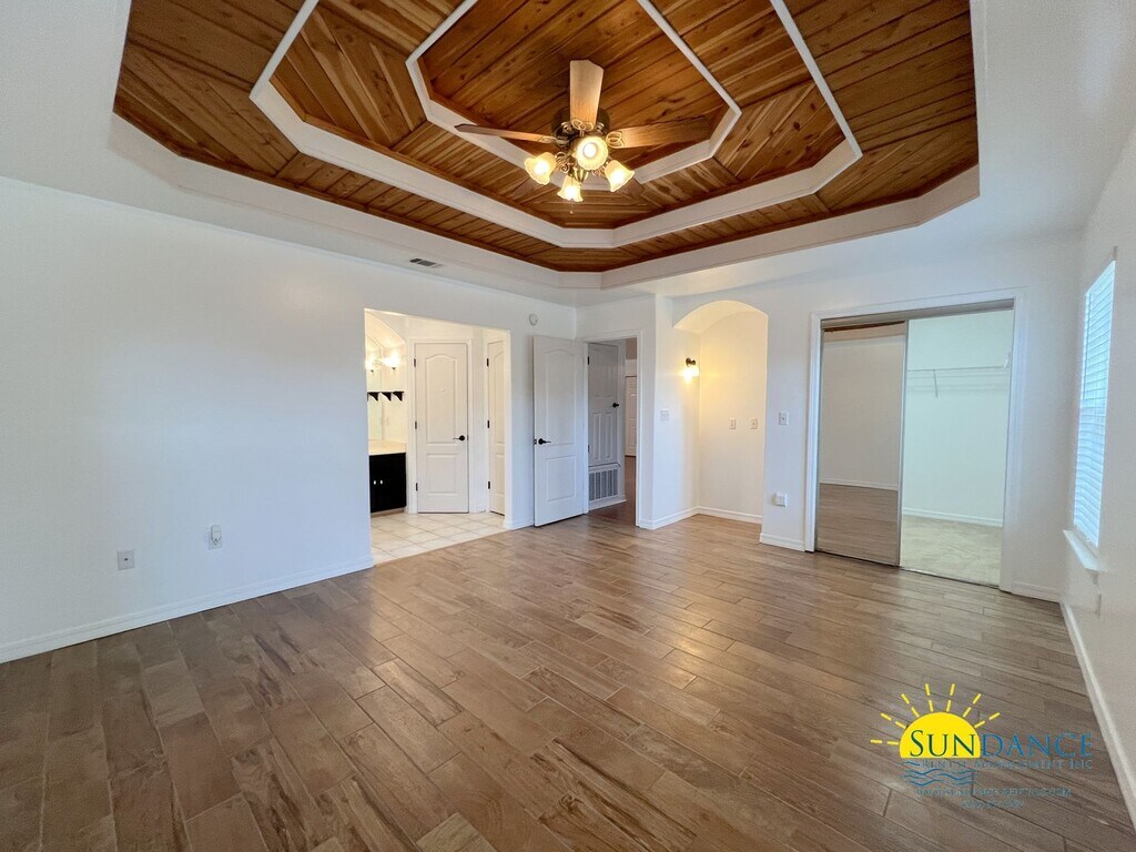 This stunning 3-bedroom, 2-bathroom home in Crestview offers the perfect blend of comfort and convenience—just minutes from shopping, dining, and multiple military installations. Featuring an attached 2-car garage and additional driveway parking, this home is freshly painted and a true must-see! The thoughtfully designed split-bedroom floor plan provides generous space in the main living areas while maintaining privacy for each bedroom. As you enter, you’re welcomed by a spacious living room with LVP flooring and vaulted ceilings that create an open, airy feel. The full eat-in kitchen offers ample cabinet and counter space, updated appliances, and flows seamlessly to a screened-in patio—perfect for indoor-outdoor living. The roomy primary suite is a retreat of its own, updated and complete with a dual vanity, custom ceiling, jacuzzi tub (AS-IS), and a tiled shower. Two additional bedrooms, an updated full bathroom, and a laundry area with washer and dryer hookups complete the interior. Step outside to enjoy a fully fenced backyard with a shed (AS-IS) and screened-in back porch, offering privacy and the ideal space for relaxing or entertaining. Fiber internet is available, adding even more value to this incredible home—don’t miss your chance to make it yours! No smoking is permitted. Strictly 2 pets only are accepted with a non-refundable $250 per pet plus a $50 admin fee (subject to owner approval)