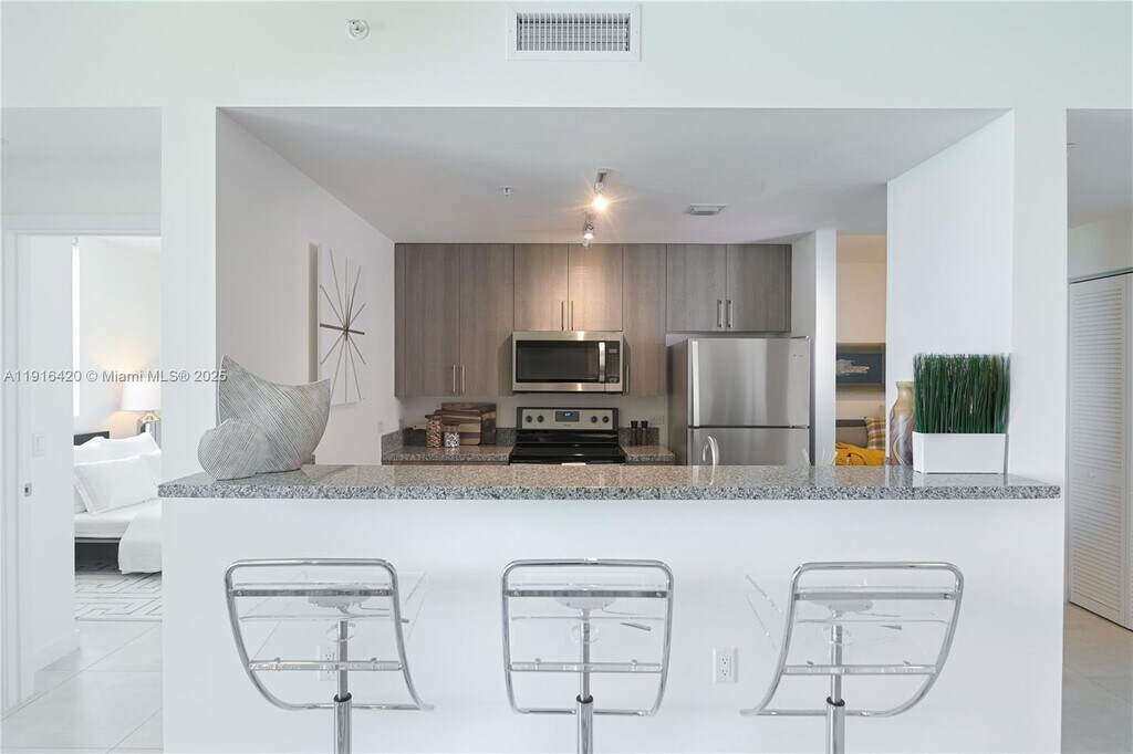Step into modern living with this sleek 1 Bedroom + Den, 2 Bathroom residence spanning 986 sq. ft. This unit features 10-ft ceilings, stainless steel appliances, granite countertops, in-unit washer & dryer, and a private balcony. The versatile 8x11 Den is perfect for a home office, guest room, or flex space. Built in 2019, this boutique 72-unit building offers a 24/7 fitness center and assigned parking (option for a second spot). Centrally located in Little Havana, just 10 - 15 minutes from Coral Gables, Downtown, Brickell, or Wynwood. $500.00 security deposit. Don’t miss the chance to make this stylish apartment your new home!