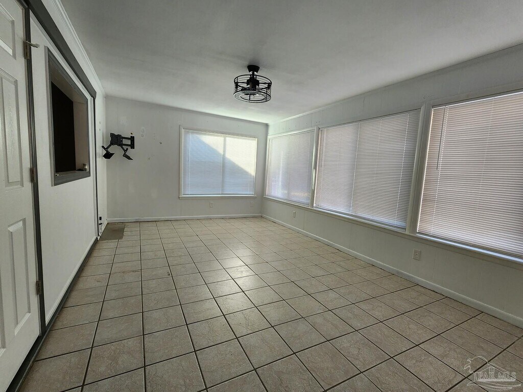 Located in Perdido Bay Country Club Estates,this 3-bedroom,2-bath home at 5140 Choctaw Ave offers generous living space,flexible rooms,and a convenient location near NAS Pensacola and Perdido Key. The interior features durable flooring throughout the main living areas and a spacious layout with multiple gathering spaces. A large family room serves as the central hub of the home and flows into an enclosed sunroom,providing additional space for relaxing,working from home,or entertaining. The kitchen has been updated with modern cabinetry,stainless steel appliances,ample counter space,and a functional layout that opens to the adjacent living and dining areas. Both bathrooms feature updated finishes and walk-in showers. The primary bedroom includes a private sitting area that connects to a screened patio,creating a quiet retreat separate from the main living spaces. Secondary bedrooms offer comfortable proportions and flexibility for guests,home office use,or additional living needs. Outside,the fully fenced backyard provides plenty of room for outdoor activities,pets,or entertaining. Additional features include covered outdoor spaces,ample storage,and off-street parking. Conveniently located close to NAS Pensacola,shopping,dining,and the beaches of Perdido Key,this home offers space,functionality,and location in an established Pensacola neighborhood. Pets allowed with owner approval. Apply online. $75 Application fee per adult,half off for active-duty military. Subject to credit check,background check,employment verification,and rental verification. CERTIFIED Funds!