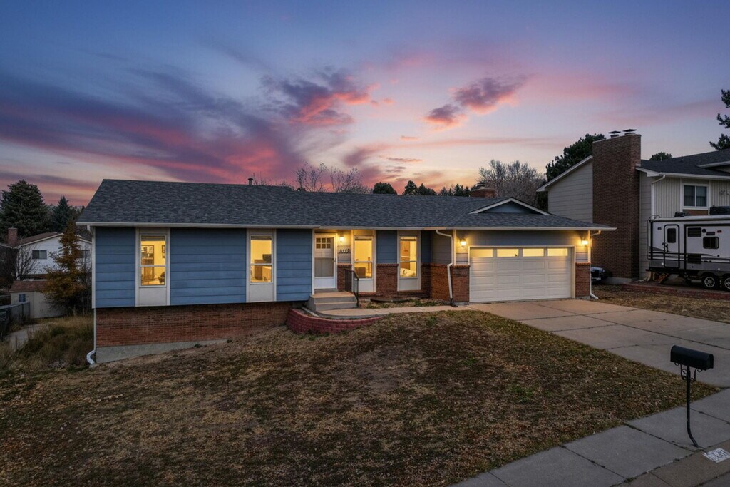 $400/month off first for 6 months if rented before December 31st, 2025! We want to see someone living in this home for the holidays.Welcome to this updated 4 bed, 2.5 bath raised ranch in the desirable Old Farm community and near the convenient Powers corridor. Nestled in a quiet cul-de-sac with wonderful neighbors, this home offers stunning Pikes Peak views and a large park just steps away. The main level features an open layout with living, dining, kitchen, bonus room w/fireplace, plus 3 bedrooms and 2 baths.The finished walkout basement includes a spacious family room, half bath, 4th bedroom, workout space or office, and lots of storage.Enjoy modern comforts like central A/C, forced-air heating, a whole-house humidifier, washer/dryer, and a fully equipped kitchen. Outside, relax on the deck, let your pup enjoy the small dog run, and keep cars warm in the insulated 2-car garage.Available now for move-in! Fill out an application and request a showing!