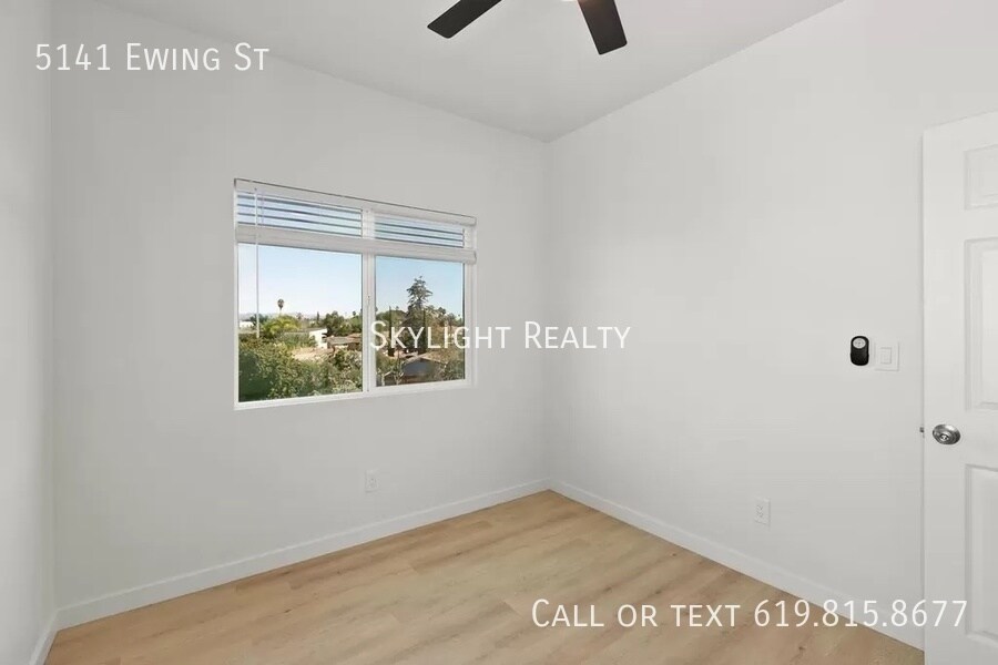 Now Leasing for 2026! 4 Bed 2 Bath Remodeled Home at 5141 Ewing St – Walking Distance to SDSU! Book a Tour: We'd love to show you around! Call us at to schedule a tour. Property Features: -Fully remodeled -DOUBLE ROOM - Home can sleep 4-5 people comfortably -Shared back patio with view -In unit Washer/Dryer -Dishwasher -Walking distance to SDSU Lease Terms: -12-month lease period -Pets allowed upon approval. Additional $300 pet deposit plus $50/month pet fee required. -$43.60/month per household fee for trash. -All utilities separate from rent. Tenants set up and pay for their own electricity and wifi. $75/month per tenant flat fee for water, sewer, gas & technology fee. -Street parking APPLICATION PROCESS: 1. All tenants (and co-signers, if applicable) must complete an application. 2. Once approved, a $1,500 initial holding deposit is due to reserve the unit and begin lease preparation. 3. The remainder of the security deposit must be submitted within 1 week or by the due date listed on the lease agreement. 4. Applicants must show a minimum monthly income of 2.5x the rent and a credit score of 650 or higher. Guarantors/co-signers are accepted. Follow Us: Stay updated with more listings by following us on Instagram: @aztec.living Listed by Skylight Realty DRE# 02222135
