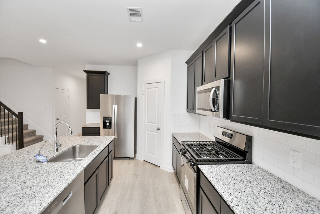 Be the first to live in this newly constructed home,complete with a refrigerator,washer,and dryer. This residence boasts 4 bedrooms and 3 full baths,with the master bedroom and a secondary bedroom conveniently located on the ground floor,each with a full bath. The open-concept floor plan features a kitchen that flows into the living area,equipped with brand-new stainless steel appliances and a granite countertop. The second floor includes two bedrooms,a bathroom,and a game room,perfect for entertainment. The backyard has a covered patio,ideal for gatherings. This smart home offers a digital thermostat water softener for the entire house and a tankless water heater MLS# 69653479