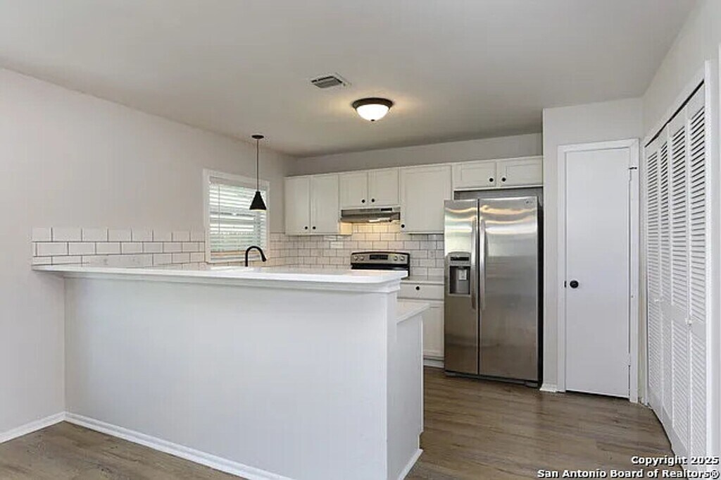This beautifully updated 3 Bedroom 2 Bath property features vinyl plank flooring throughout no carpet anywhere! The bright, modern kitchen offers fresh white cabinets and countertops, a subway tile backsplash, and a mix of black and stainless steel appliances. Refrigerator included! The kitchen opens to the living and dining area with a convenient breakfast bar, creating an open, inviting space. Large windows and a sliding glass door fill the living room with natural light and provide easy access to the backyard for year-round enjoyment. Both full bathrooms have been tastefully updated, offering a clean and modern feel from top to bottom. Apply today! Pets case-by-case and subject to approval. Applicants must complete a separate $30 pet profile. Pet Admin Fee $50/per Monthly pet rent range is $35-55 per pet $149 Admin Fee Resident benefit package of $29.95/month