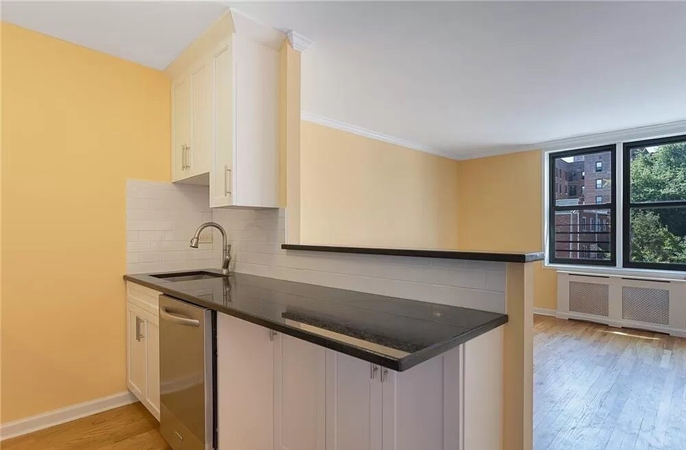 This spacious 1 bedroom is bright & sunny with 2 exposures, West & South- and is located on the 3rd floor of this well maintained Kesington Coop. The large square living room leaves plenty of room for an office and there is a separate dining area. The updated open kitchen has white cabinetry and plenty of granite counter space to cook. There are stainless appliances including a dishwasher and microwave. The large bedroom fits a king and so much more and is perfectly separated from the living area by an updated bathroom and five closets including a walk-in. There are sleeve new AC units in each room to not take away from the window space, and hardwood floors throughout.