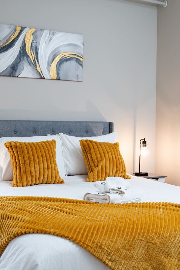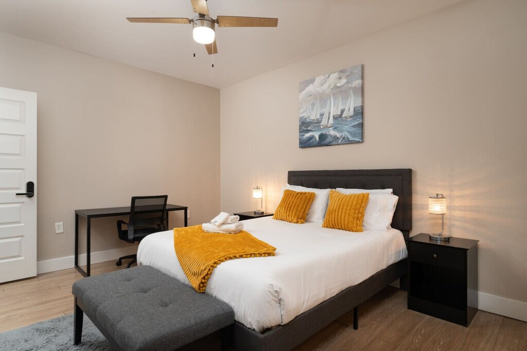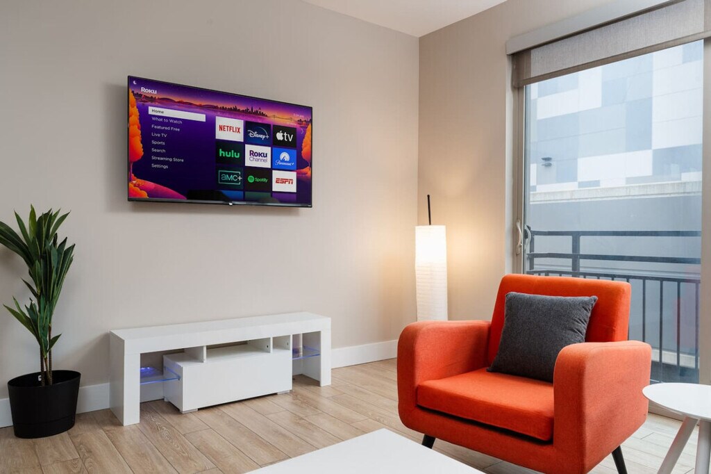Located in the heart of downtown Indianapolis, this stylish two-bedroom apartment offers a prime location just steps from Mass Ave. Enjoy easy access to Gainbridge Fieldhouse, the Convention Center, and Circle Centre Mall. The apartment features modern amenities, making it perfect for business travelers, sports fans, or weekend getaways. This cozy apartment is equipped with modern amenities, including a full kitchen with stainless steel appliances, in-unit washer and dryer, high-speed Wi-Fi, and a smart TV with streaming services. The apartment also offers central heating and cooling, keyless entry, and access to building amenities such as a fitness center and rooftop patio. Free street parking is available on weekends, and paid garage parking is offered for a $55 fee. Experience the vibrant Mass Ave cultural district with its trendy restaurants, boutique shopping, and live theater. You're within walking distance to Bankers Life Fieldhouse, Lucas Oil Stadium, and the Convention Center. The Indianapolis Cultural Trail connects you to Fountain Square and other historic neighborhoods, while nearby Monument Circle offers seasonal events. The scenic Canal Walk is perfect for morning jogs, and White River State Park and the Indianapolis Zoo are just a short drive away. Check-in details will be sent on the day of check-in. The apartment is not baby-proofed, so it may not be ideal for families with small children, but children are welcome at your discretion. Smoking is strictly prohibited inside or outside the property, with a $300 fine for violations. Parties and events are also strictly prohibited, with a $500 fine and possible eviction for violations. Unauthorized pets incur a $250 fee. Unapproved late checkouts will result in a $50 charge per hour. Missing or damaged items will be charged at replacement cost plus a fine of up to $250. House rule violations can result in fines up to $1000 and/or eviction. Guests staying longer than 28 days will be responsible for paying utilities used during their stay.