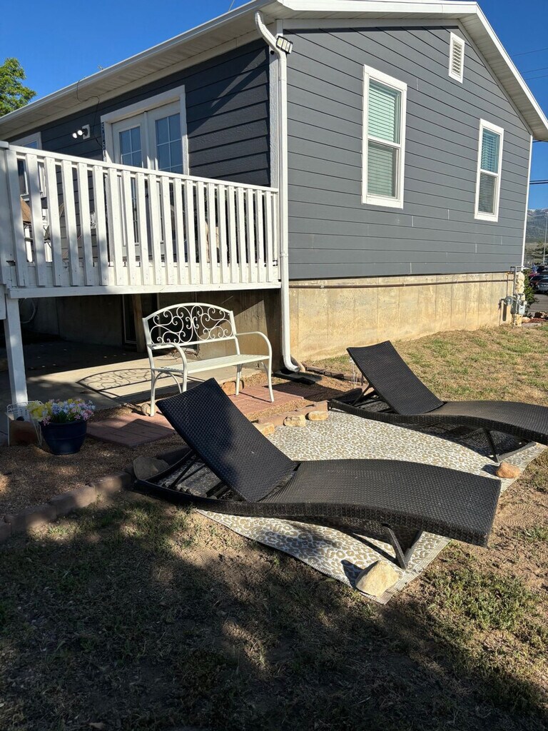 Relax in a spacious, family-friendly farmhouse in Mount Pleasant, Utah. Enjoy the perfect mix of contemporary design and rustic charm, with three cozy bedrooms, a fully equipped kitchen, and an open living area with a cozy fireplace. Step outside to a large yard with a patio and barbecue grill, all surrounded by stunning Utah scenery. Just a short walk from the town center and outdoor activities, this home is perfect for a peaceful and active getaway. The open-concept living area features a cozy fireplace, perfect for unwinding after a day of exploring. The fully equipped kitchen boasts modern appliances, ample counter space, and all essentials for home-cooked meals. Three cozy bedrooms offer gel hybrid foam mattresses, bamboo sheets, and down-alternative pillows for ultimate comfort. The bathroom is stocked with essentials including shampoo, conditioner, body wash, hair dryers, and fresh towels. A washer and dryer are available for guest use. The property is pet-friendly, allowing pets at the cost of $10 per pet per day. Guests are required to pick up after their animals, with a charge of $10 per exterior location if not cleaned up by the guest. Unauthorized pets incur a $250 fee. A massage therapist is available on-site, and guests interested in booking a massage during their stay can inquire for details. The extended gravel driveway accommodates up to eight vehicles, including trailers, toy haulers, and trucks. Located just across from the high school’s athletic facilities, including a running track, football field, baseball diamonds, tennis courts, and a soccer field. A short walk from the town center and outdoor activities, this home offers both convenience and access to Mount Pleasant's attractions. No smoking or vaping is allowed on the premises, with a $200 per day fee for violations. Quiet hours begin at 10:00 PM each night and continue until sunrise. Guests will use the west side driveway for parking, with entry via a digital door lock located at the back porch. The homeowner lives in unit B below, but the home is well constructed to ensure privacy and quiet. A $50 unauthorized late check-out fee will be assessed for each hour past the indicated check-out time.