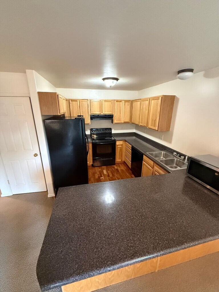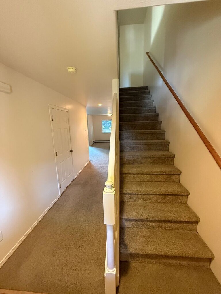 This end unit condo is ready for immediate move-in and offers one of the most convenient locations in Bozeman. The interior has been freshly painted and thoroughly cleaned. Tile flooring is featured in the bathrooms, while the kitchen and half bath highlight attractive wood floors. On the main level you will find a well-designed kitchen with updated countertops, dishwasher, range, and refrigerator. The dining area opens to a private patio, and the living room provides ample space for relaxation. A half bath and attached garage add everyday convenience. A covered front porch creates another inviting outdoor area. The upper level includes a primary suite with a walk-in closet and a tiled bathroom featuring dual sinks. Two additional bedrooms, another full tiled bathroom, a laundry room with washer and dryer, and a hallway linen closet complete the upstairs layout. Located next to a park and surrounded by open green space, this property offers easy access to outdoor recreation. The HOA manages lawn care and snow removal, and water and sewer services are included. No pets. No smoking.