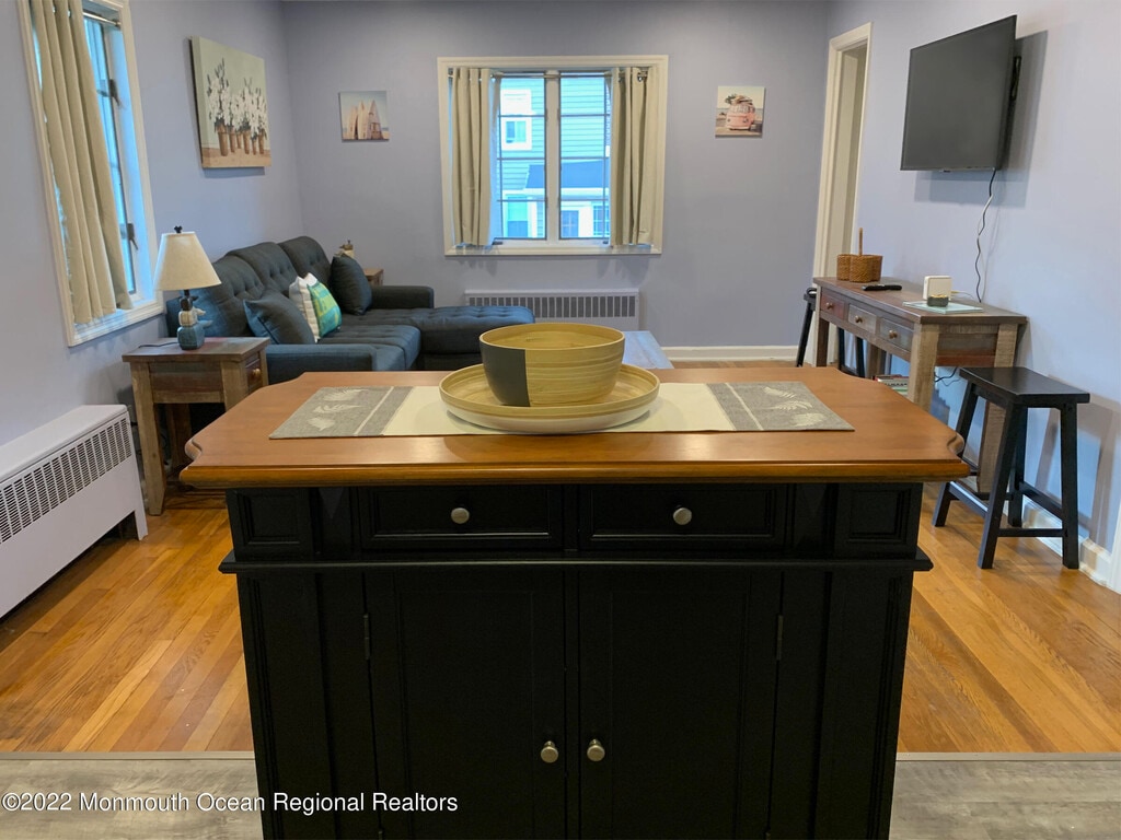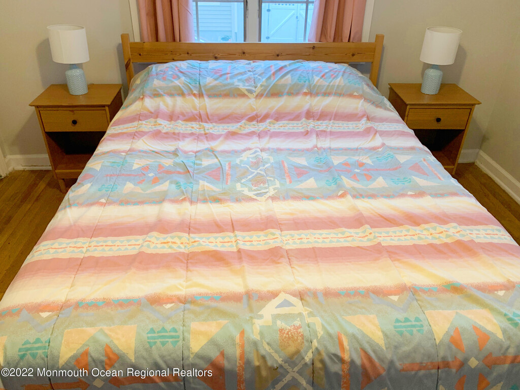 Summer 2026 rental : Updated 1BR,1 BA REAR 2nd story apt inBradley Beach. Updated kitchen w/ island w/4 stools,open to sunny family room w/ new furniture,pull out sofa,Smart TV & Internet,bedroom w/ queen bed,2 closets,black out curtains & HWF's throughout. Spa -like shower with hexagon tile floor,glass shower doors. Bonus room on ground level w/ full size Washer & Dryer,Sliding glass doors that overlook yard,perfect for storing Bikes & Beach chairs This rental also includes generous outdoor space,a stone patio with BBQ,table,chairs,linens & towels.,SUMMER renta NO PETS,NO Smoke (2 AC units)Short term for travel NURSES. $****,open to summer monthly,multiple weeks preferred: 1850/week summer or 1850/month for winter.(winter of 25-26 is rented)