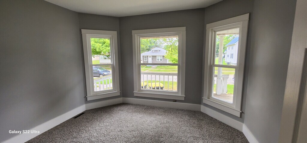 3 bed 1 bath apartment .First floor In unit laundry Nice carpet and LVP floorsBasement Off street parking