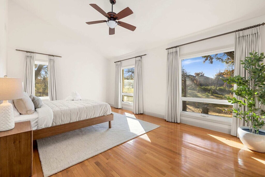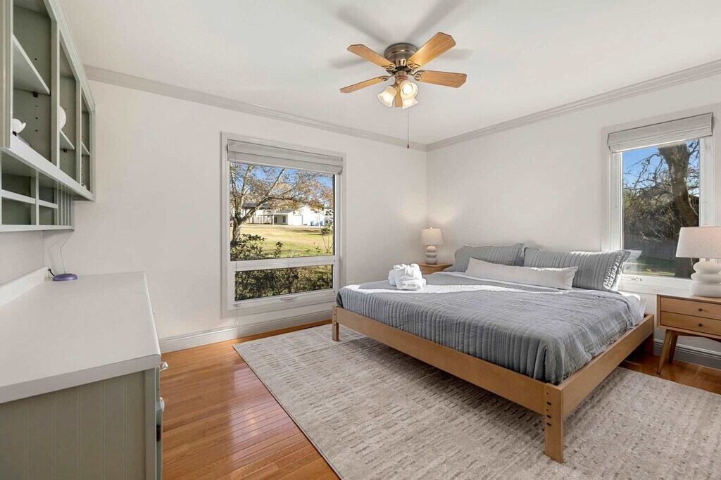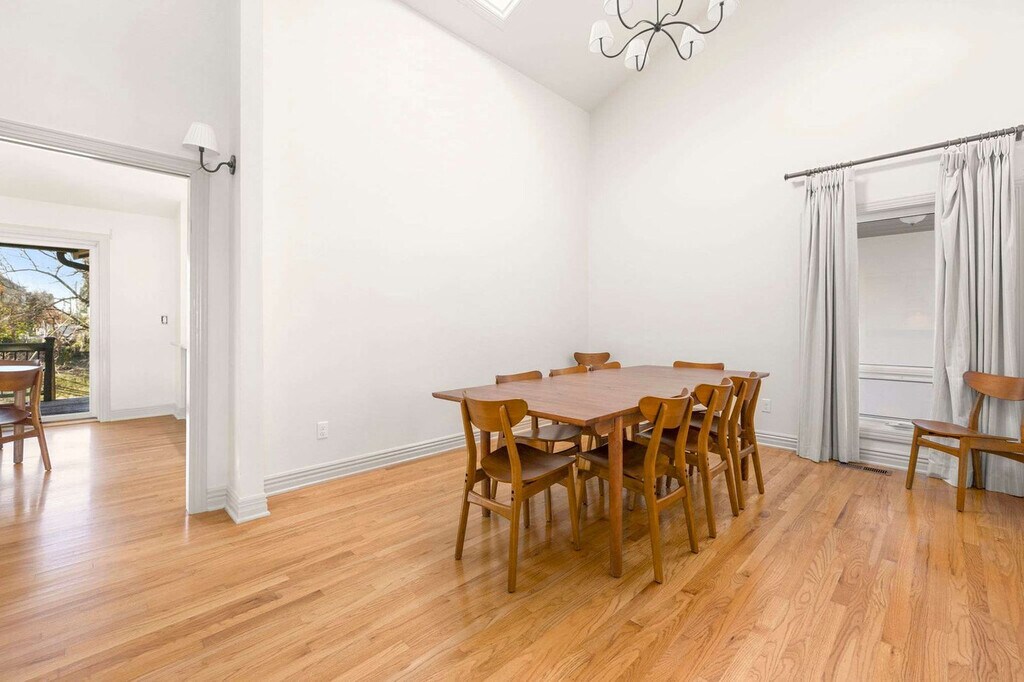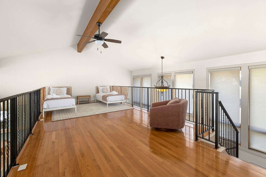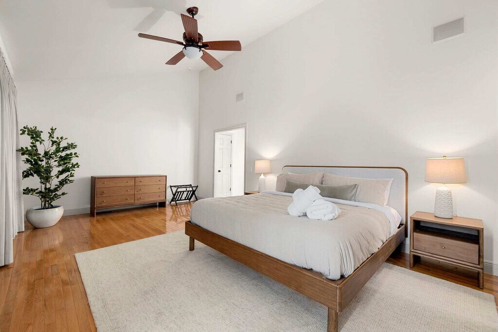 Feel at home in this gorgeous and spacious 3-story home in Downtown Bentonville. This 6-bedroom, 3.5-bathroom home is the perfect blend of luxury and convenience for the whole family. This home features a home theater, a huge sunlit living room, a ping pong table, a fully stocked kitchen, and a formal dining space. The main living room is complete with comfy seating, a large Smart TV and Sonos sound system, and huge windows with a gorgeous view. The open concept kitchen has everything you'll need and a table for 4. The formal dining space has a large table for 8 and a wine cabinet. The primary suite includes a large en suite bathroom with a huge shower and soaking tub. Downstairs is the home theater with 7 lounge chairs, a massive screen, streaming apps, and a sound system. There is also a washer and dryer for guest use. Enjoy the huge patios with an outdoor dining table, grill, and view of the open acreage. Garage parking is available for 3 cars. A pack-n-play is available. Dogs are welcome with a fee of $90 per dog. Located just steps away from Bentonville's greatest hits, this home is ideal for anyone looking for good food, great sights, and world-famous MTB trails. It's a half-mile easy walk to Downtown Bentonville, 1 mile to Crystal Bridges, and 1.5 miles to The Momentary and the 8th Street Market. It is steps from the Razorback Greenway and Slaughter Pen Trail and 2 miles from Coler Mountain Bike Preserve. Walk, drive, or easily ride your bike to access all the amenities downtown Bentonville has to offer! Parties or guest actions that result in disturbances, property damage, extensive extra cleaning, or smoking indoors will incur a fine of $1,000. Dogs discovered at the property without prior notice or cats discovered at the property will incur a fine of $400. Unauthorized checkout delays will incur a fine of $100 per hour. If you smoke in the home, you will be fined $1,000 plus the cost of any smoke remediation necessary. Quiet hours are observed between 10:00 PM and 10:00 AM. [SI]