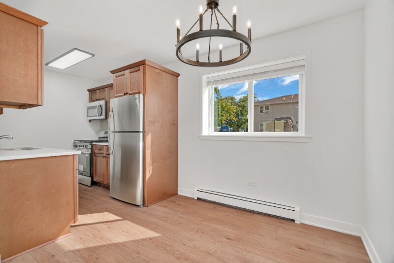 Property Id: 2128913 Step into modern comfort with this beautifully updated 2-bedroom, 1-bath apartment offering 875 sq. ft. of stylish living space. Recently renovated from top to bottom, this unit features: Bright, spacious living area with a contemporary design, new modern flooring, light fixtures, ceiling fans, and large, efficient windows throughout. Fully renovated kitchen with new cabinets, solid surface quartz countertops, and stainless steel appliances. Stylish bathroom with updated fixtures. New doors, insulation, trim work, and paint throughout. Newly paved parking lot and brand new coin-operated laundry for residents' convenience. Landlord pays for water and heat. Located just a few blocks from local schools, a public park and pool, this apartment offers both modern finishes and a convenient neighborhood setting. All applicants are subject to background check, credit report and eviction history report. Tenants required to have renters insurance.