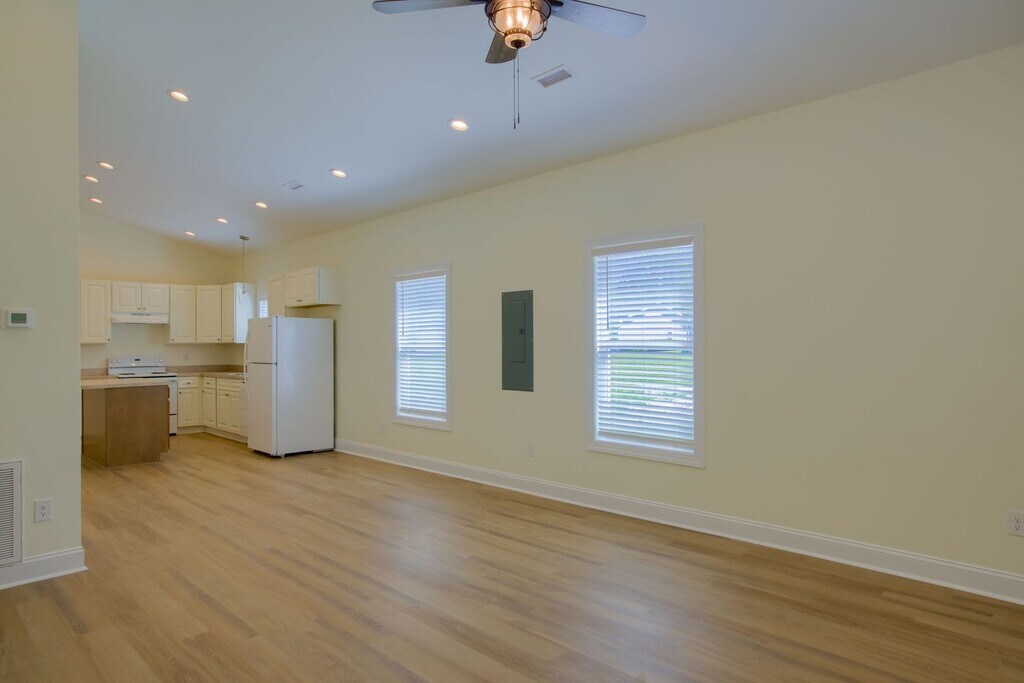 Built in 2023, this beautiful single-story home offers modern comfort and coastal charm. The open floor plan seamlessly connects the living, dining, and kitchen areas—perfect for entertaining or everyday living. The chef's kitchen features stainless steel appliances, ample counter space, and a large island ideal for meal prep or casual dining. With 3 spacious bedrooms and 2 full baths, this home provides both functionality and style. Enjoy contemporary finishes throughout, plenty of natural light, and thoughtful details that make this home stand out. Located in the heart of Old Sneads Ferry, you'll be close to local shops, restaurants, and just a short drive to the beaches and Camp Lejeune's back gate.
