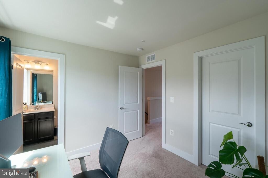 Applicants must make 3x income of monthly rent and have a 720+ credit score. Welcome to this striking four-level townhome featuring 3 bedrooms and 3.5 bathrooms, blending modern convenience with sophisticated design. Built in 2021, it is situated in the sought after King Farm community of Rockville. The entry level offers a private foyer and a finished two car garage, while the main level is designed for both function and style, featuring a spacious dining area, powder room, and a chef’s kitchen with stainless steel appliances, custom cabinetry, and granite countertops. Upstairs, the primary suite includes two walk in closets with custom shelving and a spa inspired bath with dual sinks and a walk in shower. An additional en suite bedroom and full size laundry closet complete this level. The top floor hosts a third en suite bedroom, a generous loft for a family room or game area, and access to a rooftop terrace, perfect for morning coffee or evening entertaining. Residents enjoy King Farm’s resort style amenities, including a pool, fitness center, dog park, trails, playgrounds, and more, all minutes from Shady Grove Metro, shopping, and dining. This home is conveniently located near the I‑270/370 corridor and just 10 minutes from both Rio and Rockville Town Center.