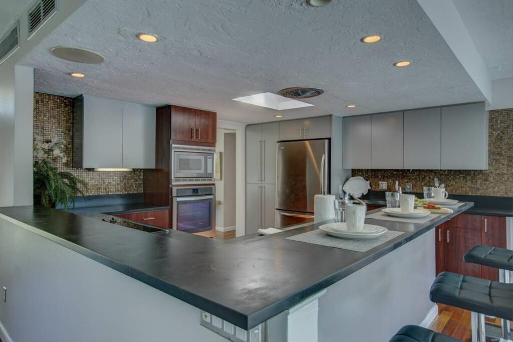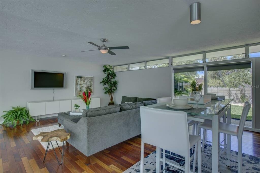 You will Never Want to Leave this 4-bedroom house on Siesta Key! Mid-Century Modern,4 bedroom home with saltwater,heated Pool with canal views. Located within a 6 minute bike ride to Siesta Key's Beach Access #5 and walking distance to everything that Siesta Key Village has to offer. This unique 1950's built,partially renovated,4 bedroom,3 full bath,"Sarasota School of Architecture style" pool home brings a blend of both vintage and urban accents,make this home TRULY unique and one of a kind! From the stainless steel front door & glass foyer,to walls of glass for incredible views. Fully furnished price is $8400,unfurnished $7400. Lawn and pool care included. Cook gourmet meals in this spacious,beautifully updated kitchen with a skylight allowing natural light to shine in,built in double ovens,glass cook top range,solid slate countertops. The kitchen dining area includes incredible water views! Open the multiple sets of sliding glass doors to the covered lanai and pool deck. The luscious,mature landscaping surrounding this property,add to the feel of a tropical,one of a kind,getaway. The spacious master bedroom suite with king sized bed features multiple sliding glass doors leading out to the pool and deck with walls of glass for incredible views of water,a large sitting area plus original built-ins and an en-suite modern,upscale bath with walk-in tiled shower. The second bedroom has a queen bed,closet,and includes a door leading out to front patio area. The third and fourth bedrooms have queen beds,with closets and lots of natural light. One opens up to the front and one has its own on-suite bath and separate seating area leading to the back pool and canal. This area can be completely closed off for as a private suite. There is a big,circular drive for parking and a shed for additional storage space with sufficient space to store your bicycles for riding into town and to the beach. Stacked washer and dryer off the kitchen for your convenience. 6500 LB boat lift for boat up to 23',only 1 bridge to bay (Grand Canal bridge). MLS# A4625973