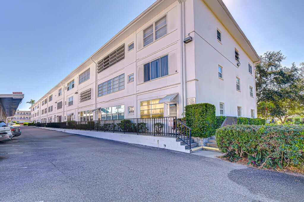 Available NOW for Annual Lease. Welcome to Disston Arms Condominiums, located in the centrally-located Disston Heights neighborhood. This spacious 2-bedroom, 1-bath second-floor unit. Inside, you'll find a functional kitchen with ample cabinet and counter space, an open living and dining area, and a bonus Florida Room featuring a wall of windows—perfect for added living space or a bright reading nook. Both bedrooms offer generous closet space, and the unit includes a valuable additional storage room. NEW HVAC system being installed this month (April 2026)! Convenience is key with assigned covered parking, plus laundry facilities and a trash chute available on every floor. A new roof was recently installed. The monthly HOA fee includes water, sewer, trash, exterior maintenance, and lawn care. No age restrictions, no flood zone. Located just minutes from Downtown St. Petersburg, I-275, Tyrone Mall, top dining options, and less than 15 minutes to world-famous Gulf Beaches, this condo sits in one of St. Petersburg's most convenient and desirable areas. Per HOA - No pets