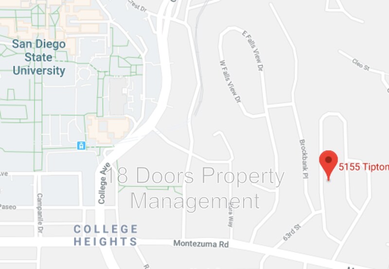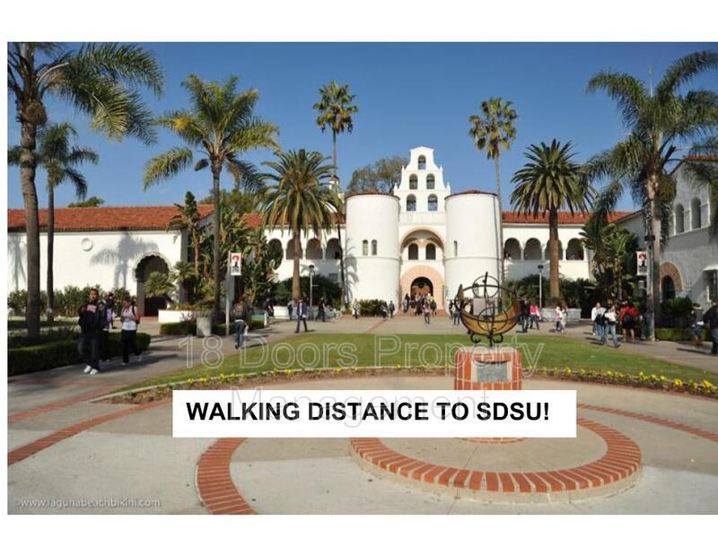 THIS HOME IS ONLY A 5 MINUTE WALK TO SDSU AND ALL OF THE RESTAURANTS AND SHOPS ON COLLEGE AVENUE. Perfect fit for five. This is a true 4 bedroom home with an open floor plan. There are 3 bathrooms including an en suite in the master bedroom. The master is huge and is perfect to share. There are travertine floors in all common areas with vinyl plank wood floors and ceiling fans in all bedrooms. The wide open kitchen is spacious with plenty of storage, granite countertops and an eat-in bar perfect for barstools. The bathrooms have very nice finishes. The home is spacious with over 1,700 square feet of living space. The backyard is low maintenance and private making it perfect for entertaining. FREQUENTLY ASKED QUESTIONS - Is there Air Conditioning? Yes, Central Air - How much is the deposit? 1 Months Rent - Is there a washer and dryer? Yes - What is the parking situation? 1 Car Garage and 2 spaces in the driveway INCLUDED IN THE PRICE OF RENT: - Trash TENANT PAYS: - Water - Electricity - Internet - Cable PET POLICY: No Pets allowed at this property FOLLOW THESE INSTRUCTIONS TO SCHEDULE A SHOWING: 1. Copy and paste this link: 2. Scroll down to the property that you are interested in and click SCHEDULE A VIEWING. 3. You can also call to schedule a showing. You will be sent a text message with available times and to finalize your showing appointment. 4. Follow all the steps and make sure that you confirm your time slot. TERMS AND FEES: - Application Fee: $50 per adult (non-refundable) - Length of Lease: 12 Months - Renters Insurance: Proof of $100,000 liability must be shared prior to move in. TO QUALIFY FOR ONE OF OUR PROPERTIES YOU MUST MEET THE FOLLOWING CRITERIA: INCOME: As a household, applicants must make 2.5 times the rent in monthly gross income. Sufficient proof of income is required such as two of your most recent pay stubs or tax documents. CREDIT SCORE: Applicants should have a credit score of 700 or above with a history of on time payments. REFERENCES: Applicants must have good rental references. We send out a reference request as a first step so please provide accurate contact information. EVICTIONS: No history of evictions. CO-SIGNERS: Co-signers may be considered if any of these factors are not met. A co-signer must meet the income and credit score criteria as outlined above on their own. HOLDING A PROPERTY: We hold properties for 2 weeks from the date of approval so applicants must be willing to start a lease within that time frame. 18 Doors Property Management DRE #: 02038087 Price, terms, offerings, availability subject to change. All information deemed reliable, tenant to verify all. *18 Doors Property Management adheres to all Fair Housing Laws*