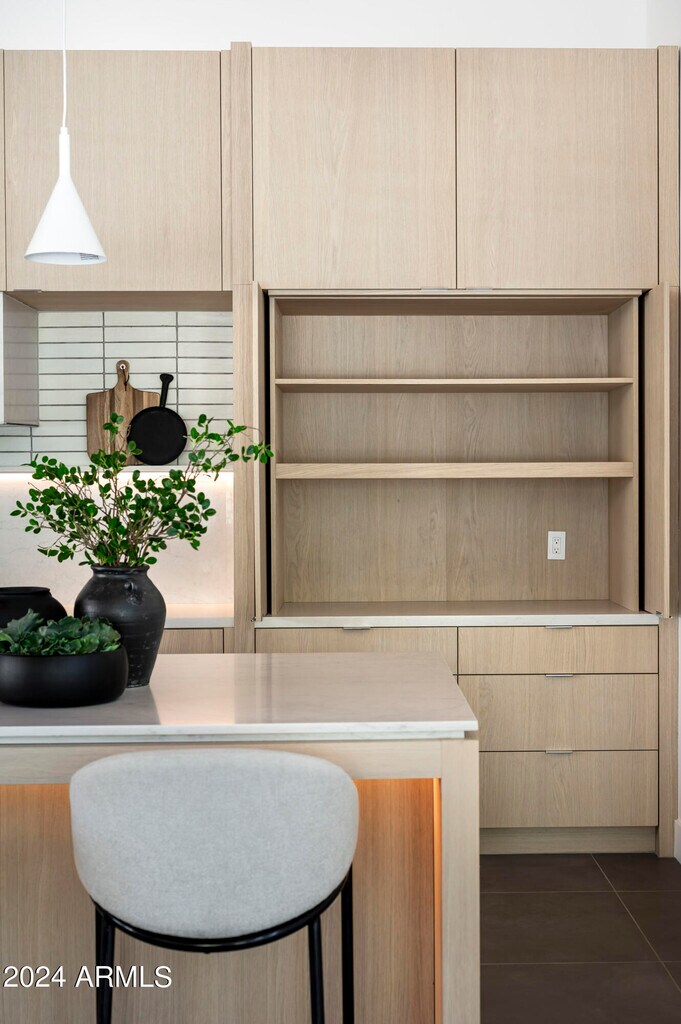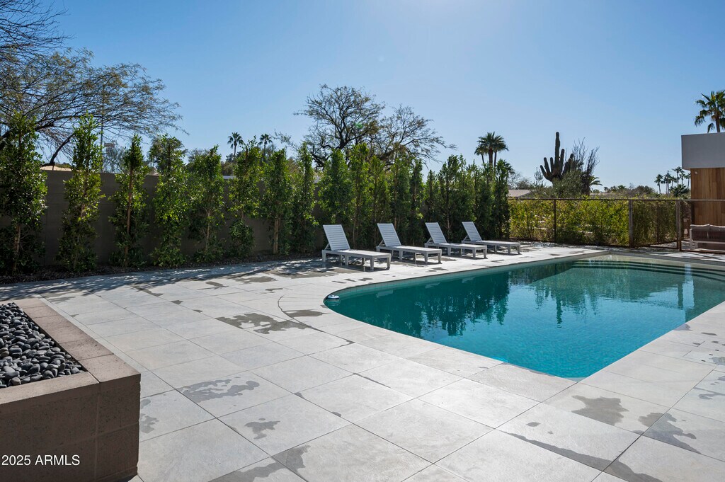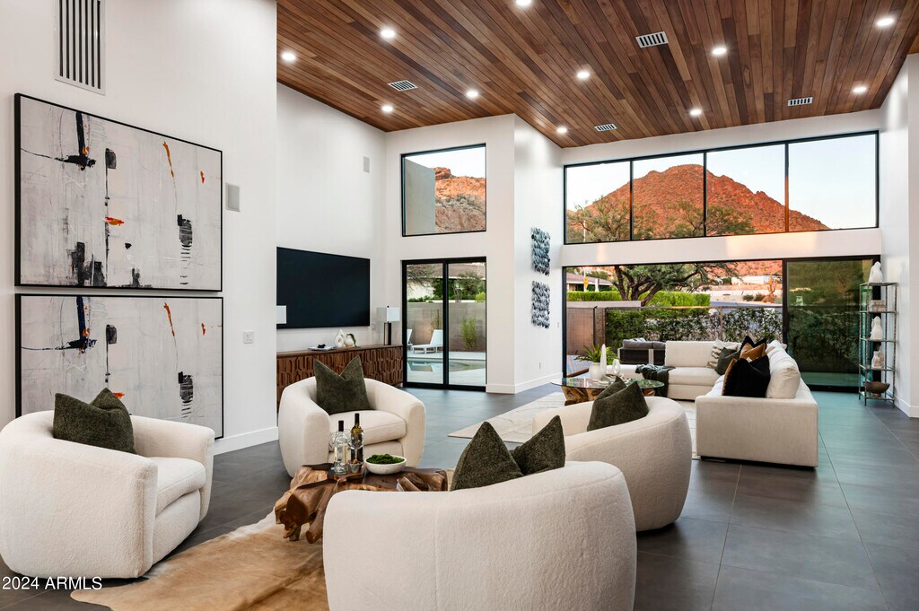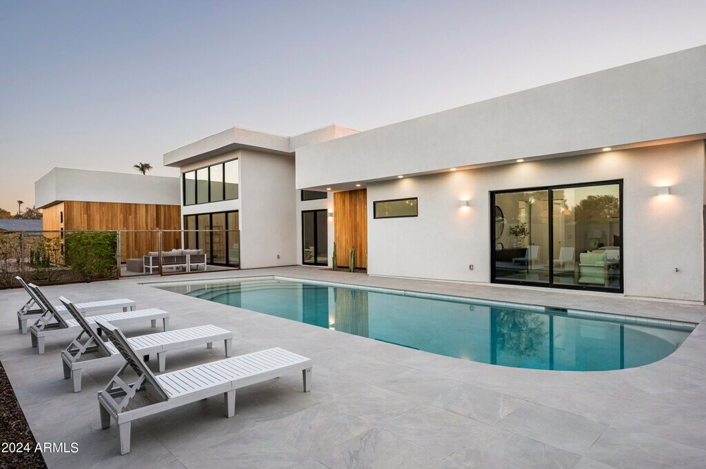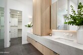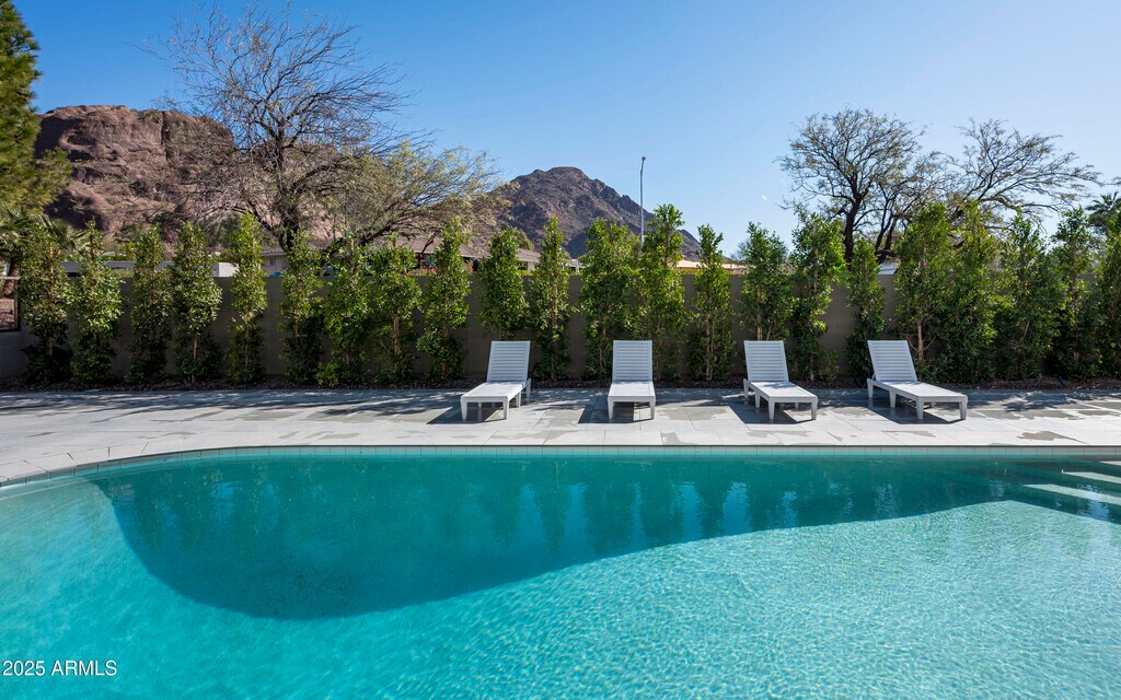 This architectural masterpiece,completed in 2024,with interiors by Joel Contreras Design,offers unparalleled elegance and comfort. This exquisite 5-bedroom,4.5-bathroom estate,boasting 4,496 square feet of luxurious living space on a sprawling 0.56-acre lot and is located in the highly sought-after Hopi school district. The expansive great room with over 2,000 square feet and 16-foot ceilings,seamlessly blends the living,dining,and family areas and features stunning views of Camelback Mountain,creating an inviting atmosphere perfect for entertaining and relaxation. The gourmet kitchen is a chef's dream,featuring Thermador appliances,Vadara Quartz countertops,Shinnoki cabinetry,a 15.5-foot island,and a convenient pot filler. This home is great for entertainers and families.