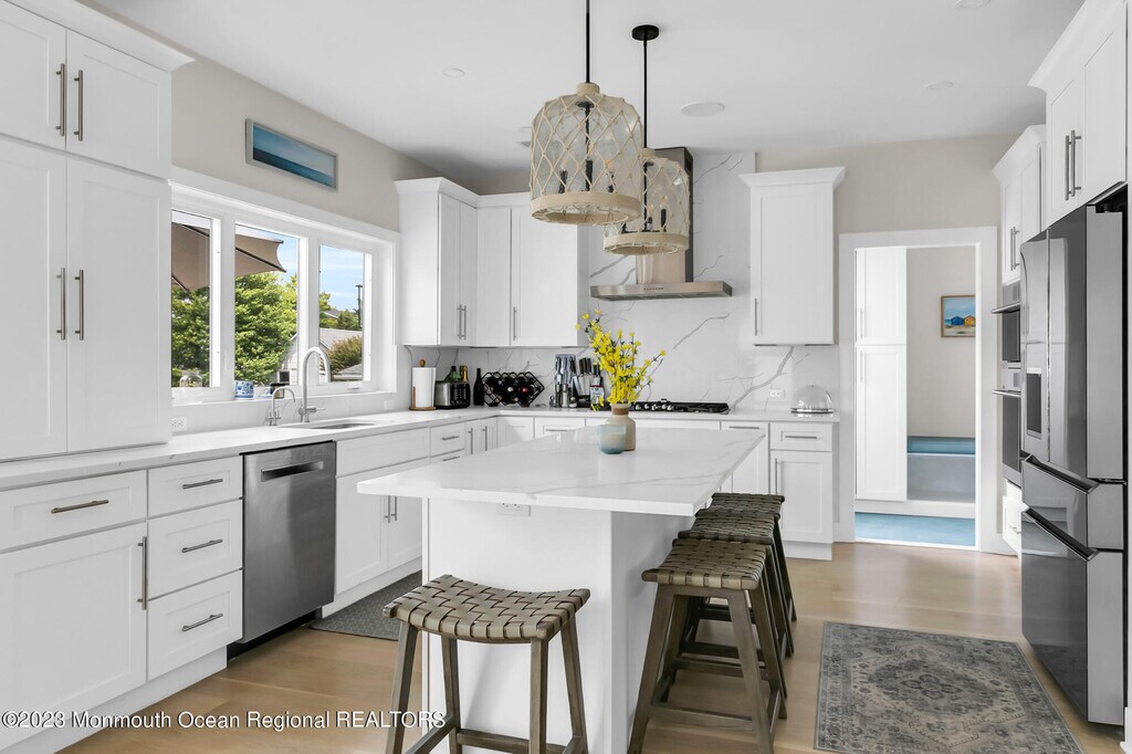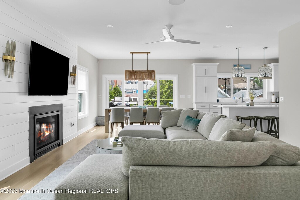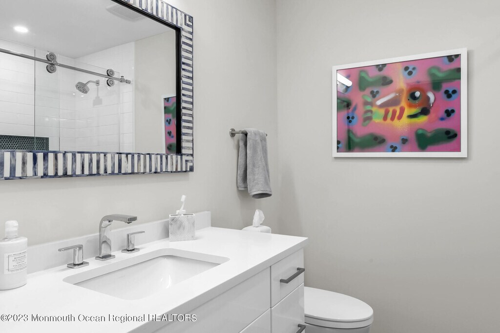 WEEKLY RENTAL:Brand new home in the heart of Bay Head! Features include an open floor plan,covered front porch,large rear deck,backyard pool,and ample parking. There are 3 bedrooms and 2 baths on the second floor,including the master suite,plus additional bedroom space and another full bath on the third floor (4 beds,plus a seating area). Sleeps 14. Walk or bike to any part of town - the shops,restaurants,beaches,and more! 6 beach badges are provided,as are 6 beach chairs. Bikes are also available for your use. Relax by the pool,or enjoy the hot tub! Other features include a gas grill and outdoor speakers. Pets are not permitted. Now considering 2025 rentals,$16,000 per week. Utilities are not included. **Owner prefers August dates,but might consider late July.