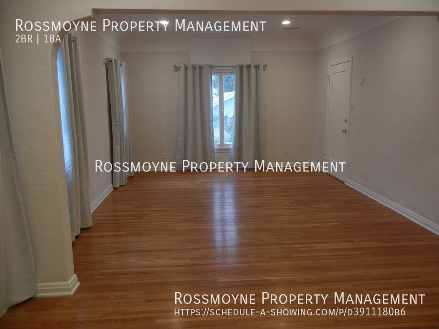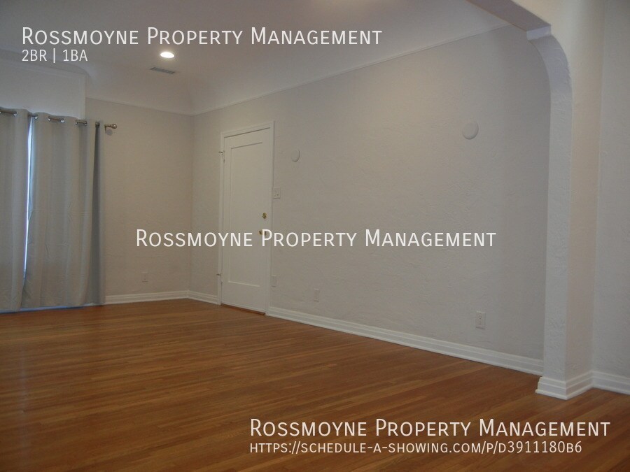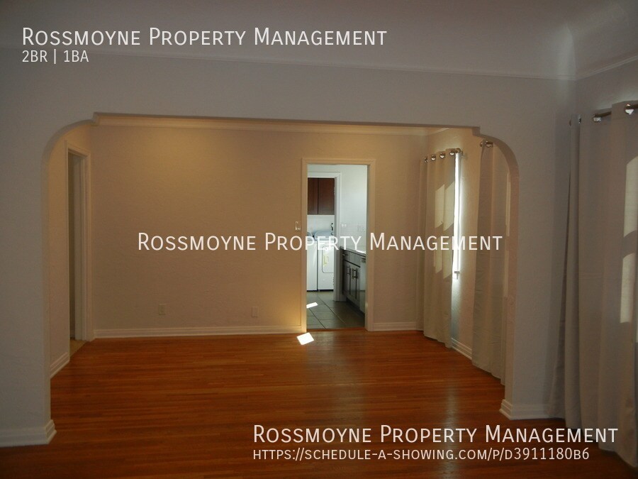 2 Bedroom 1 Bath Upper Unit in Vintage Building close to Adams Square area of Glendale. Filled with natural light, elegantly updated. Updated Kitchen Features: Stainless Appliances, Quartz Counters, Stove, Microwave, Dishwasher, Washer, Dryer. Hardwood Floors in living room, dining room. Central Heat and Air. Front and side entrance to unit. Assigned Garage. Renters Insurance will be required. Excellent Credit Required No Pets (Service animals and ESA exempt) Please click the "Inquire" button and leave your info to be notified when showings are available. Applications and instruction can be completed at ; Proof of verifiable income required with completed application. This home is for rent exclusively by Rossmoyne Property Management. Beware of any other individual(s) (even someone claiming to be the owner of the home) who might have directed you to schedule a showing — or might have scheduled a showing for you. Do not submit any application for this home with — or pay any fees or deposits to — any party other than Rossmoyne Property Management. If you have any questions or concerns, please contact: Rossmoyne Property Management Cal DRE 00659141