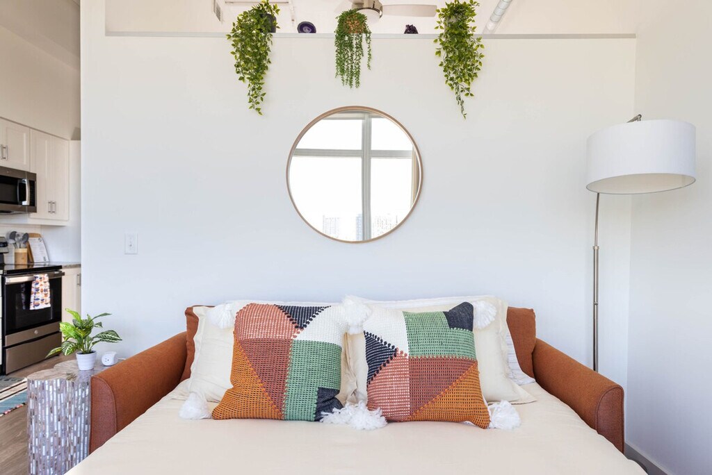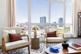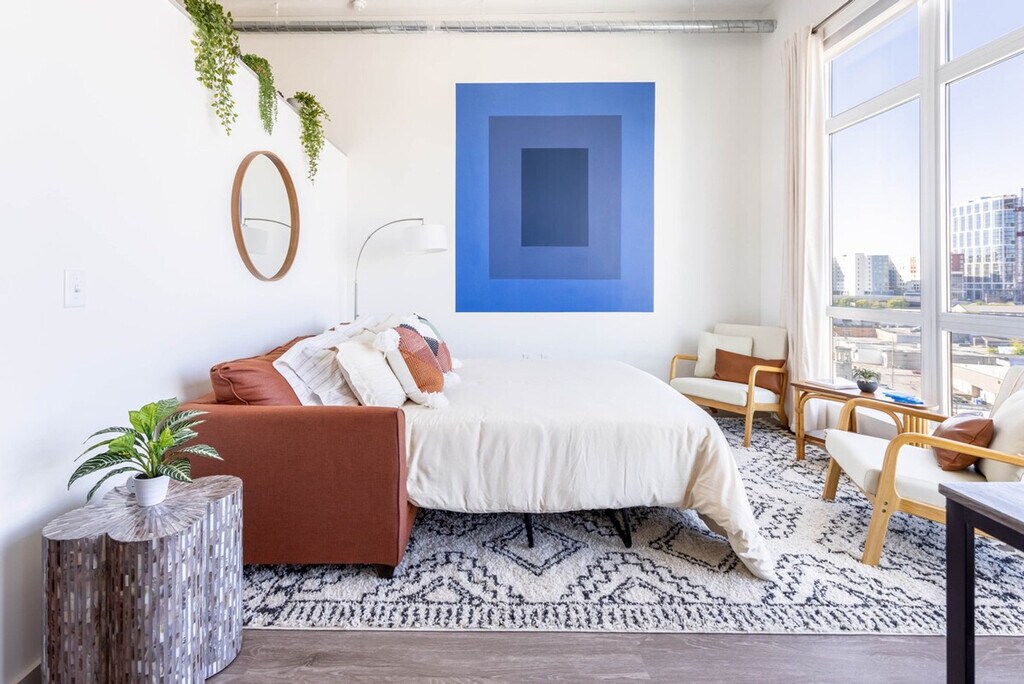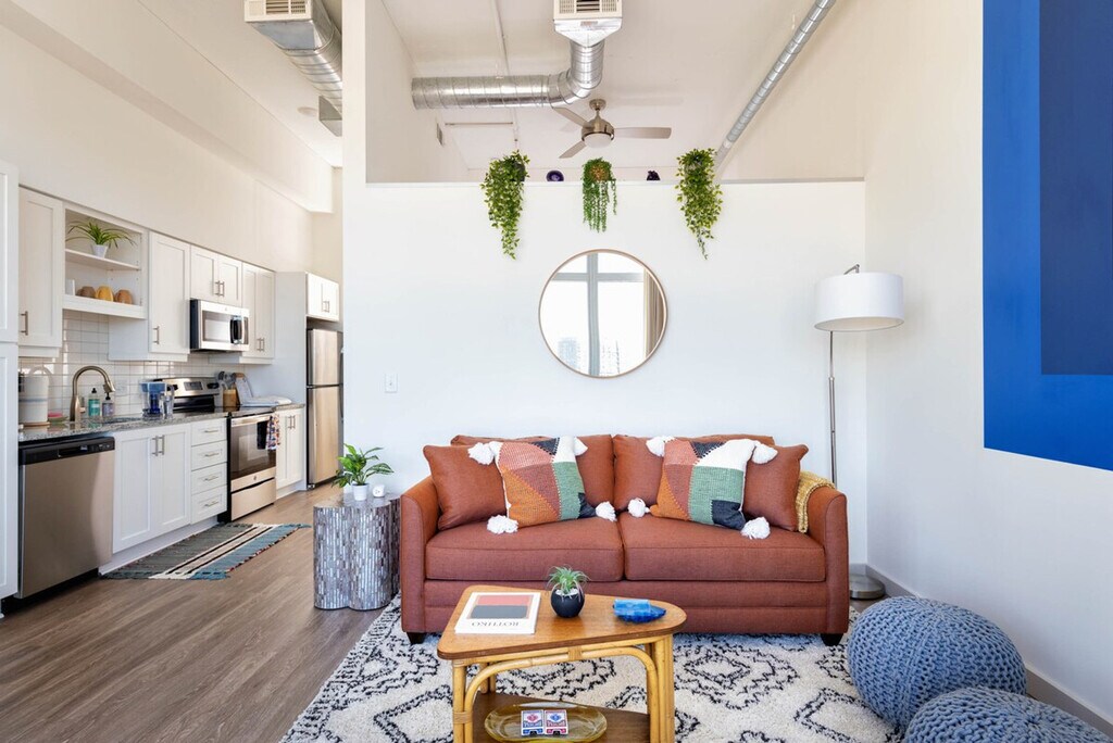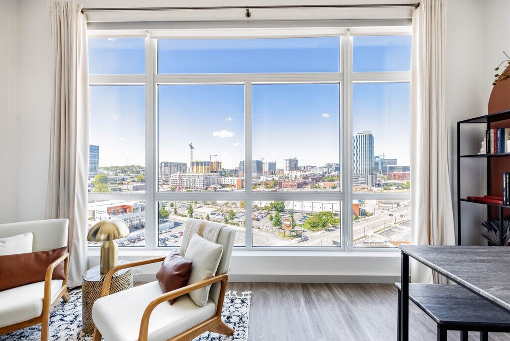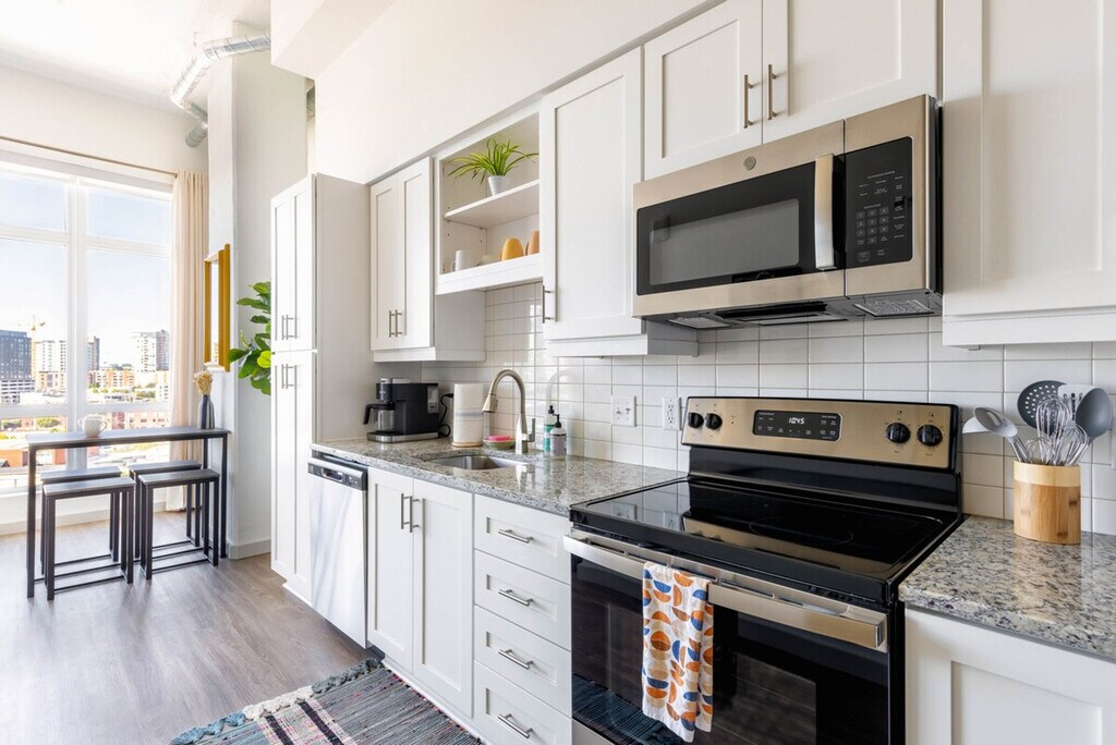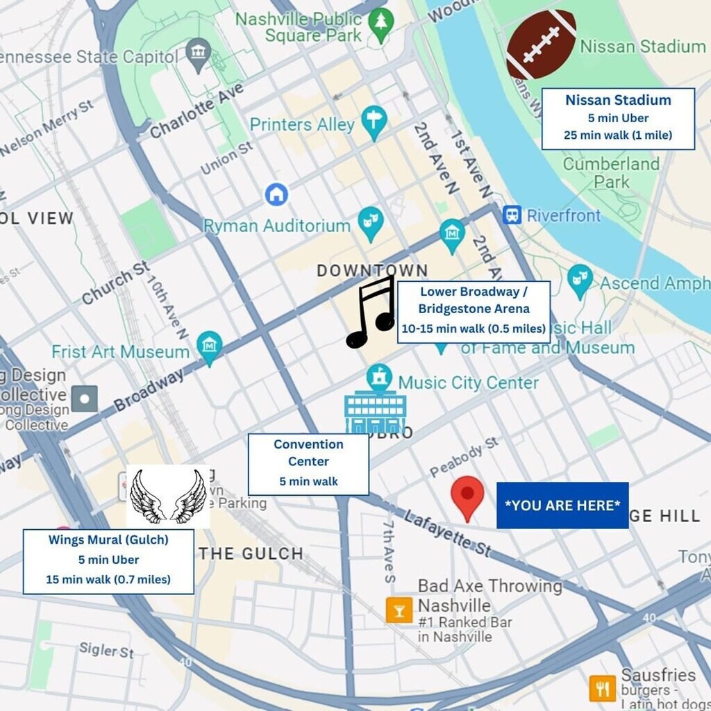 Feel at home in this penthouse with breathtaking city views in the heart of Downtown Nashville. Perfect for special occasions or small groups, this apartment sleeps 4. This apartment features strong, fast Wi-Fi, a Heavenly queen-size Nectar mattress with NectarCool Technology and cooling pillows in the master bedroom, and a Lourenco 77'' queen sofa bed with a luxury Wellynap 4 Inch Gel Memory Foam Sofa Mattress. Enjoy Sun Zero Theater Grade Extreme 100% Blackout Curtain Panels and listen to your favorite music with the Bose SoundLink Color II portable Bluetooth wireless speaker. The apartment also includes an in-unit washer and dryer, plush and quick-dry towels, a rolling cooler for the pool, thoughtfully placed charging ports, a fully stocked kitchen and bathroom with shampoo, conditioner, body wash and black washcloths, and a 43" HD Roku TV. There are also outdoor fire pits and grills. Secure, reserved parking is available for $25 nightly. This centrally located apartment is 1 minute from the Music City Convention Center, 5 minutes from Broadway and Ryman, and 10 minutes from Nashville Airport/BNA. Construction is ongoing throughout downtown Nashville, typically Monday through Friday starting around 7 am. Earplugs are provided for your use as needed, as well as QR codes to scan with free sound machine options. Noise outside of the apartment is completely out of our control. Registration Number: STR Permit # [SI]