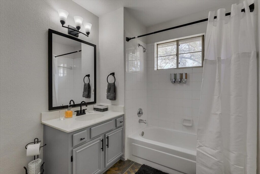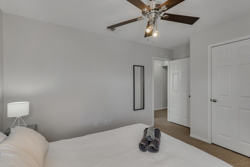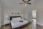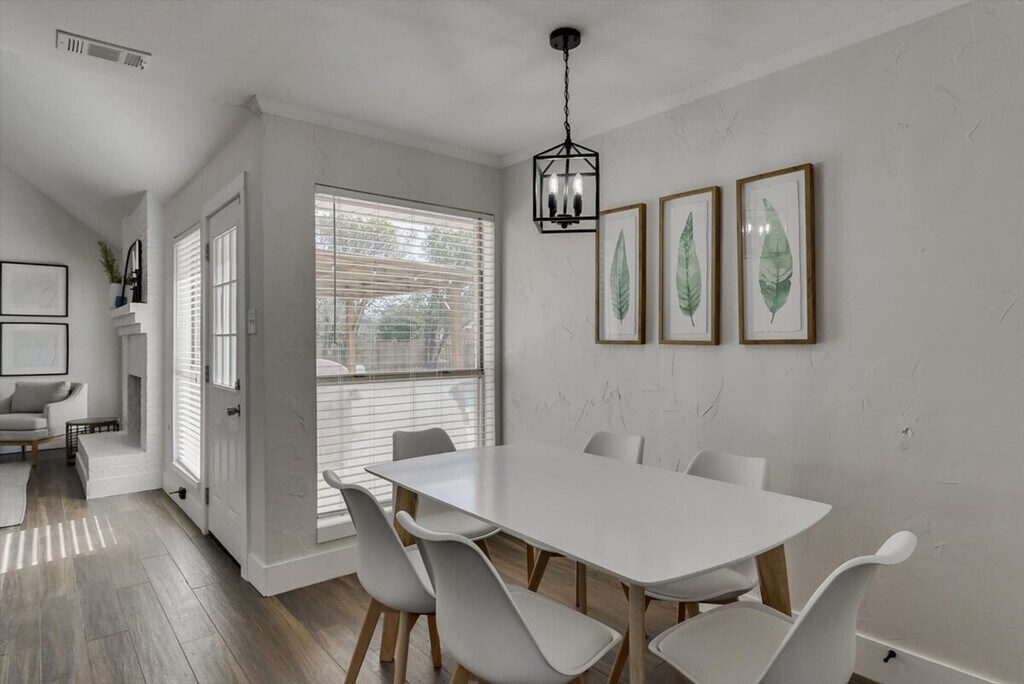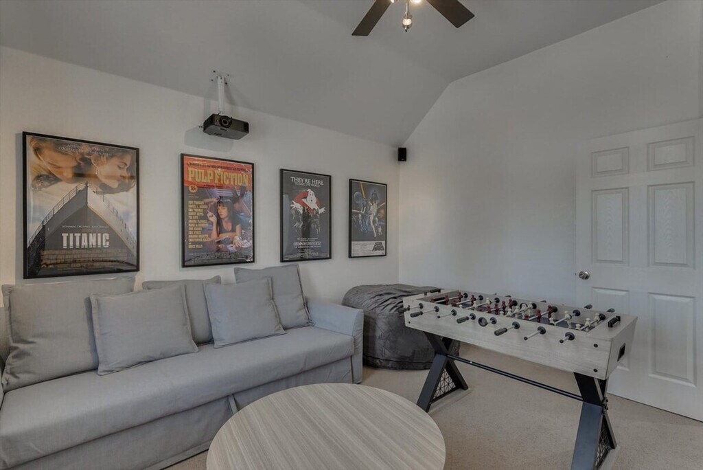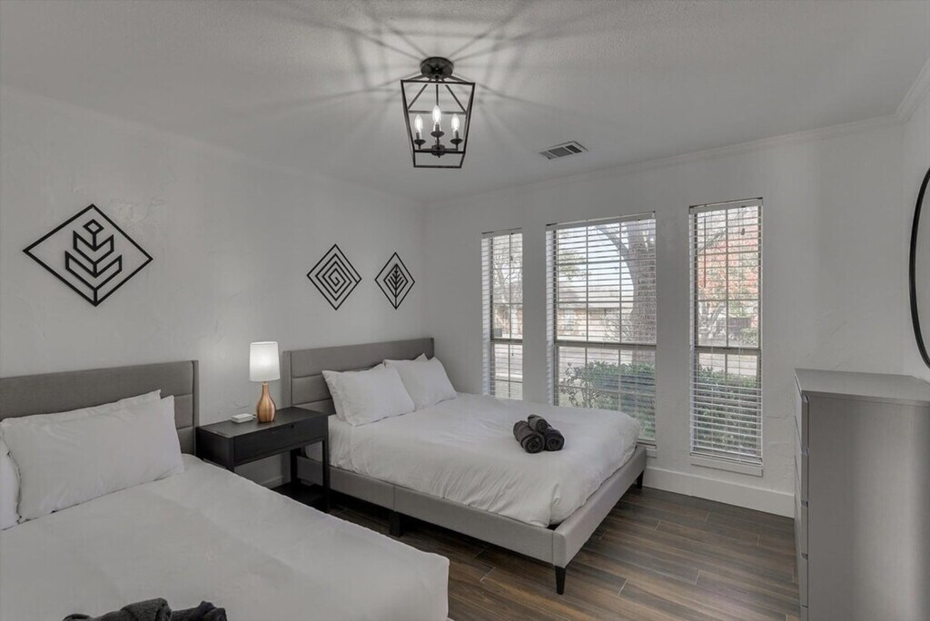 Feel at home in this spacious property featuring a private pool perfect for swimming and a cinema room ideal for cozy movie nights with loved ones. Located in a quiet neighborhood, you’re just minutes from local attractions and the vibrant Dallas city life. The modern kitchen, elegant bedrooms, and expansive living areas provide comfort and style for your stay. Whether you're planning a family gathering or a getaway with friends, this home offers the ideal setting for creating unforgettable memories. The home's sleeping arrangements include a primary bedroom with a king-size bed on the first floor, a second bedroom with two queen beds on the first floor, a third bedroom with a queen bed on the second floor, a fourth bedroom with two twin beds on the second floor, and a cinema room with a convertible queen sofa bed. The property features 2.5 bathrooms, including a full bathroom in the primary bedroom ensuite, a full bathroom on the second floor, and a half bathroom on the first floor. The open living area is a great spot for everyone to gather, featuring modern yet warm interior design. The spacious kitchen is beautifully updated with white cabinets, butcher block counters, and stainless-steel appliances, fully equipped for all your cooking needs. The stunningly decorated dining area is right next to the kitchen. The backyard is fully fenced-in for privacy, with a large patio space and a stunning pool perfect for cooling off. Pets are welcome with a fee of $150 per pet per stay. An additional nightly rate applies for more than six guests, with a fee of $39 per guest per night starting from the seventh guest. The fourth bedroom will be opened for groups of 12 or more guests. All smart TVs come with streaming apps like Netflix, Amazon, and YouTube. The pool is professionally serviced twice a week during summer and once a week during the rest of the year. The landscaper visits once a week. Nestled in the Park Ridge Estates neighborhood of DeSoto, Texas, this vacation home is conveniently located close to many amenities and attractions. DFW Airport is 35 minutes away, downtown Fort Worth is 40 minutes away, and downtown Dallas is just 27 minutes away. Enjoy outdoor activities at Joe Pool Lake, Cedar Ridge Preserve, Armstrong Park, and Windmill Hill Nature Preserve, all within a short drive. Shopping enthusiasts can explore the Grand Prairie Premium Outlets, and sports fans can visit AT&T Stadium. With a combination of big city Dallas attractions and local attractions, there’s no shortage of fun activities to fill your days. Indoor smoking is strictly prohibited, with a $500 fine for violations. Smoking is allowed outdoors, and cigarette butts must be properly disposed of. No parties or large gatherings are allowed, and only registered guests are permitted during your stay. Security cameras are installed at the front door and garage for your safety, recording 24/7. Check-in is from 4:00 p.m. onwards, and check-out is at 10 a.m. max. Unregistered guests are not allowed, and street parking is forbidden. House-trained pets are allowed with prior authorization. Quiet hours are between 10:00 p.m. and 9:00 a.m. Garbage is picked up on designated days, and stained sheets or towels must be paid for to replace them. [SI]