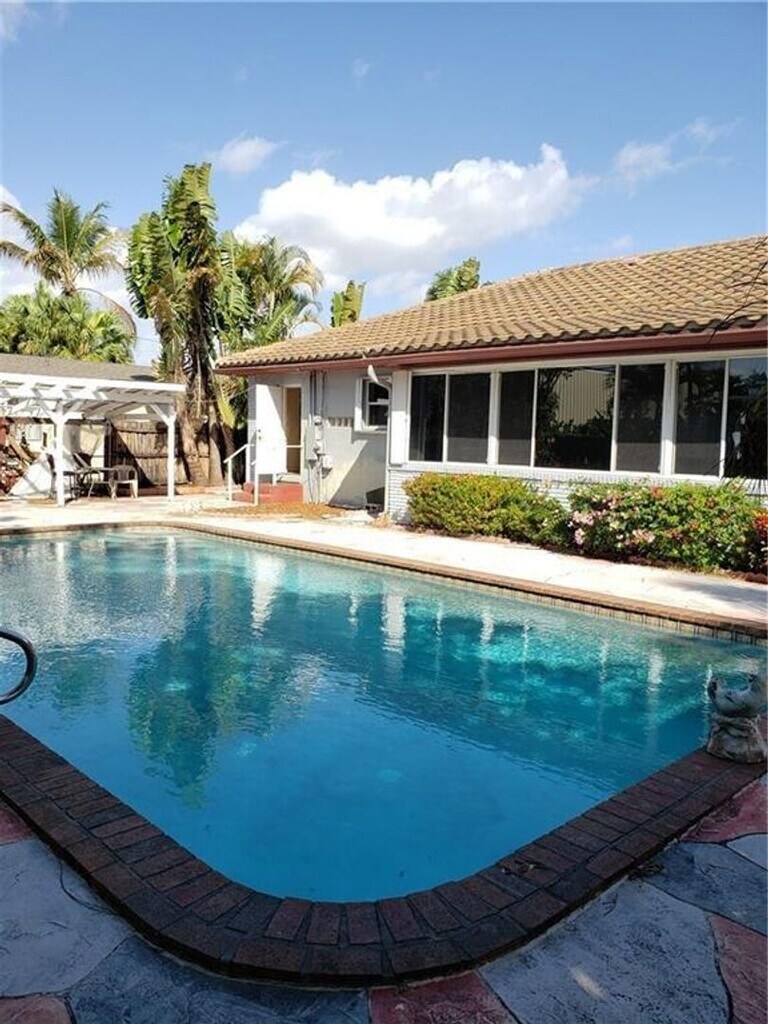 Courtesy of Dettman Realty Group LLC Posted by Andrew Coleman with EXP Realty Spacious 3-bedroom, 2-bath pool home located just one block from Wilton Drive's shops, restaurants, and nightlife. This home features hardwood floors, vaulted wood-beam ceilings, and a bright Florida room overlooking the private backyard and pool. The large kitchen offers plenty of cabinets and counter space, plus a laundry room with washer and dryer. Primary suite includes a cedar closet, and there's an additional bonus room for storage, office, or fitness. Outdoor highlights include a big pool, outdoor shower, and generous entertaining space. Pool and lawn service included; tenant responsible for utilities. Pets considered.