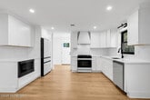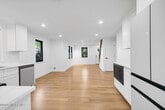 High end completely rebuilt. White oak hardwood floors throughout the entire home. Bathrooms fit with Artistic Tile and Tile Bar custom tile and pottery barn vanities. Brand new windows. Sound attenuation insulation between each unit and new insulation throughout exterior walls,roof and basements. Gas lanterns on front porch with Trex decks on front and back decks. Each unit has its own isolated garage,attic and basement. Primary bedroom features 10 foot vaulted ceilings. White shaker kitchen w/ white Samsung bespoke appliances.