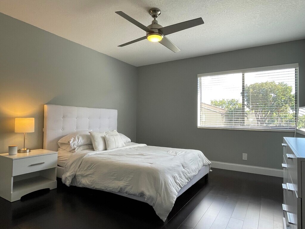 Experience the allure of this all-age community,embracing a beautiful 2-bed,2-bath sanctuary on the second floor. With a spacious living area adorned with bamboo flooring,this home offers a renovated interior featuring modern touches in the bathrooms. Enjoy the comfort of ceiling fans in both bedrooms and a large walk-in closet in the master bedroom. The screened balcony overlooks lush greenery,providing a peaceful retreat. Positioned as a corner unit,it boasts abundant natural light. The community's offerings include a large heated pool,a jacuzzi,tennis courts,and tranquil pathways throughout the serene neighborhood,conveniently located near markets and restaurants,with the Wellington Mall just a 10-minute drive away. MLS ID R11168360