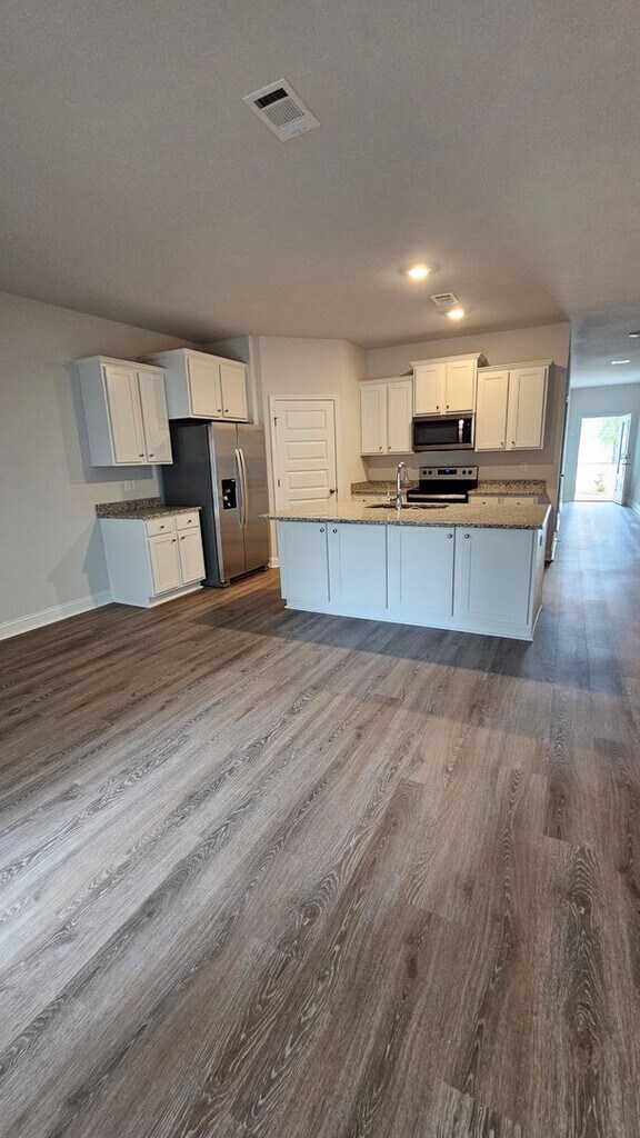 This beautiful 4 bedroom 2 bath home is located in Grand Oak Village in Lake Park, just minutes from Valdosta, I-75, shopping, schools, and restaurants. This home was built in 2023 and has approximately 1835 sqft. The open concept is great for entertaining, family time, or even just a quiet evening. The kitchen is a wonderful area if you love to cook or bake with stainless steel appliances for ease of cleaning, and also has plenty of cabinet storage. The bedrooms have carpet and the rest of the home has vinyl flooring. The primary bedroom includes a private bathroom with a separate bath and shower. The remaining bedrooms share a hall bath. Come view this home to see all the charm.
