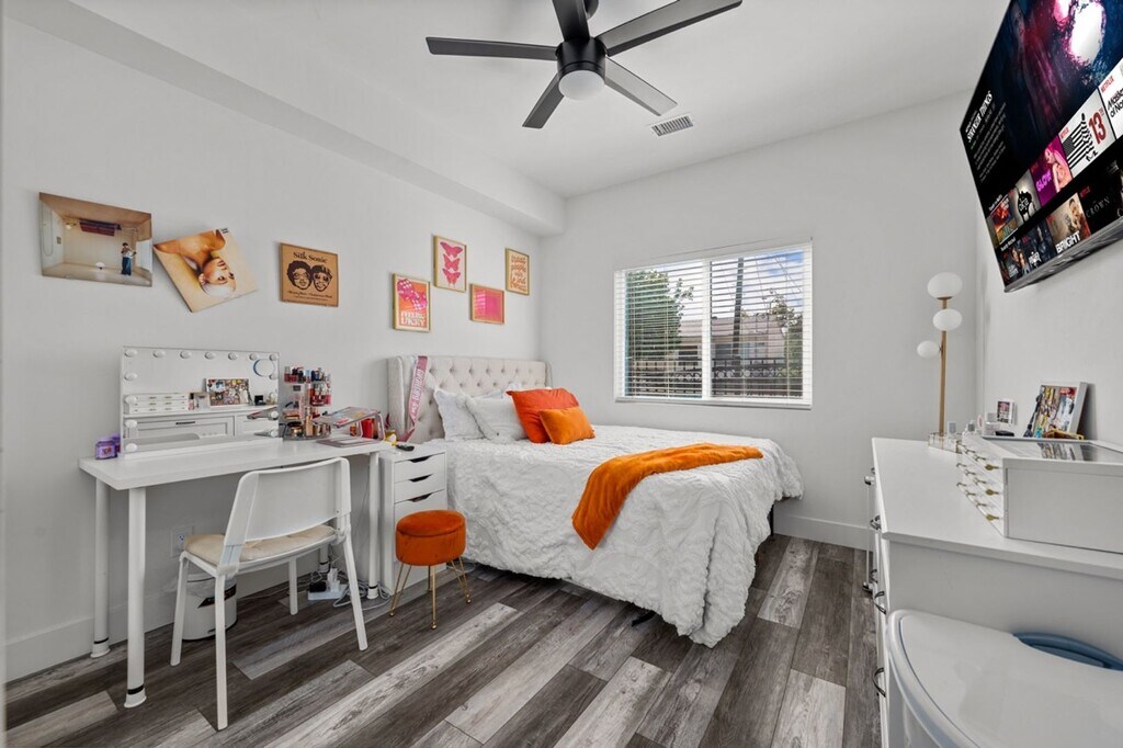 Property Features: - Two story home with dual master bedrooms! - Central air conditioning - Cozy upstairs balcony - perfect for studying, tanning, or hanging with roommates! - In-unit washer & dryer - Dishwasher - Open eat-in kitchen - Ceiling fans + mirrored closet doors - Water & gas included with $85 flat fee per tenant per month - Can accommodate 5 tenants