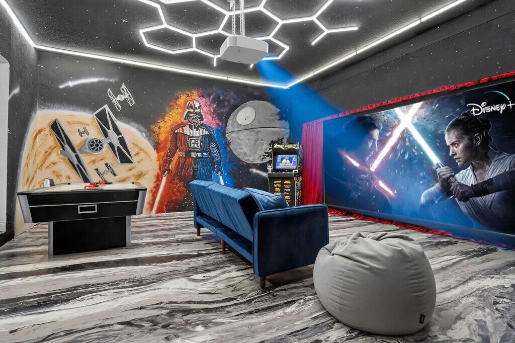 Feel at home in this spacious 2-story home, a paradise property located in the quiet and residential Wonderly Estates area of Miami. This home offers 4 bedrooms and 3 bathrooms. This retreat is thoughtfully designed for families and groups to enjoy Miami’s vibrant lifestyle. Enjoy the Star Wars-themed game room, pool table, mini golf, ping-pong, fire pit, and private pool. This home offers a flexible visitor policy and a 4-car driveway. Located on a corner lot street, this home is 5 minutes from the shopping center, groceries, and gym, 15 minutes from Everglades Park, and 20 minutes from Miami International Airport. Flexible check-in/out is available. [SI]