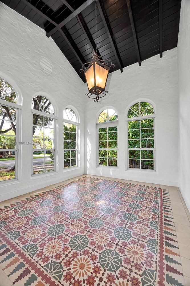 Tucked along a quiet, tree-lined street, this stunning Old Spanish sits on an oversized lot and blends historic charm with modern comfort. Bright, impeccably maintained with wonderful architectural details. A grand foyer welcomes you with soaring vaulted ceilings and walls of glass that flood the interiors with warm, natural light. The spacious layout includes a 2/1 main house complemented by a private 1/1 guest house. The refined living room anchors the main living space with a classic fireplace, while the beautifully updated kitchen is a chef's dream, featuring gleaming granite countertops, premium Wolf and Sub-Zero appliances, and a gas stove. Warm hardwood floors flow seamlessly from room to room, leading out to a generous, lush backyard. Centrally located, walking distance to Granada Golf Course and Downtown Coral Gables. MLS # A11985440