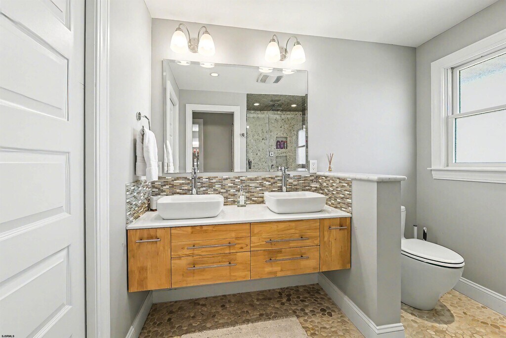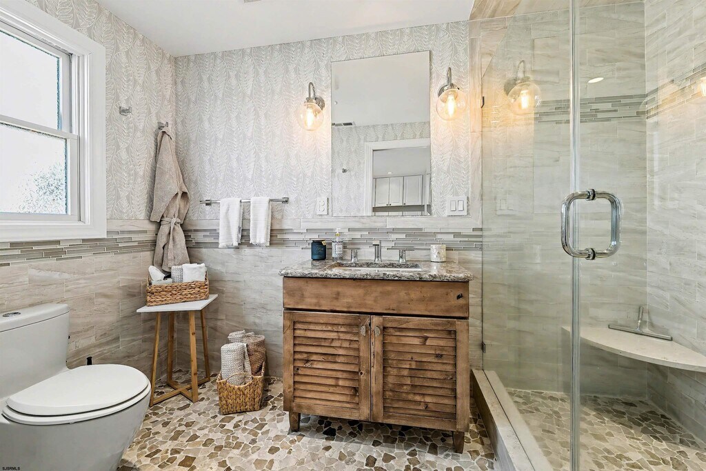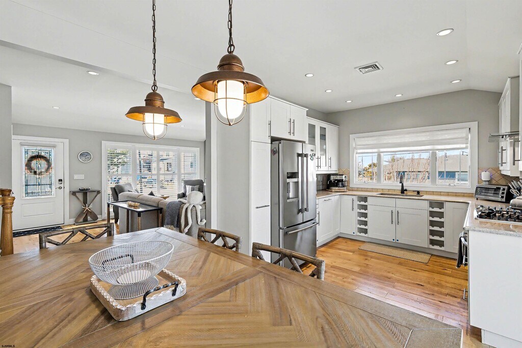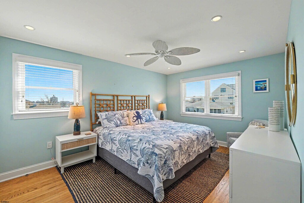 Impeccable sophistication describes this beautifully renovated 4 bedroom 2 full bath home on large corner lot. Bamboo & Walnut wood flooring, central air, new kitchen & baths with walk in showers. Furnished with coastal luxury vibes. Open layout with eat-in kitchen with sliders that lead to the large 14' X 25' foot back deck with jacuzzi & BBQ. Outside shower plus plenty of fenced in lawn area for summer fun. Laundry area with wash basin & a bonus nursery for little ones. Bike and beach chair storage under the back deck. Short drive to the beach, stores & restaurants. Walk to ski beach for relaxation or to enjoy the weekly summer concerts. Enjoy the nightlife in Atlantic City. Owner is flexible on rental dates, available June $12,000. July $16,000. August $20,000. full season or possibly weekly. Call for more information. MLS ID 605806