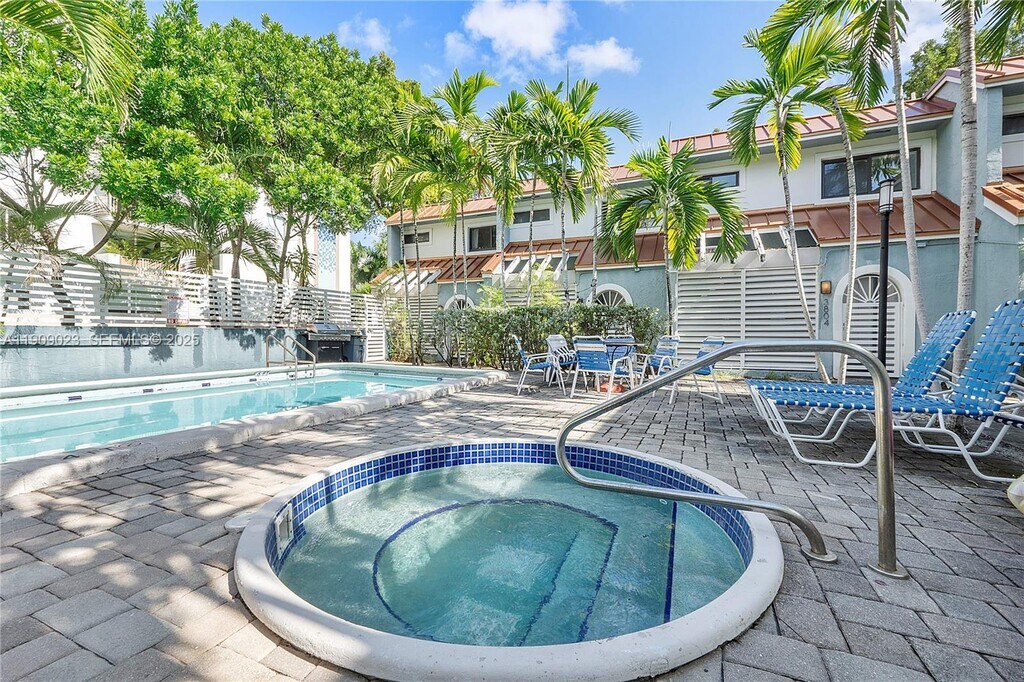 Welcome to your dream residence, a stunning 2 bedroom modern TH, minutes away from the vibrant Miami Design District. This 2 story gem seamlessly blends contemporary design with functional living. Gorgeous brand new porcelain tile floors! Step inside to discover an open concept living space featuring sleek finishes and abundant natural light. The gourmet kitchen, equipped with top of the line appliances , flows effortlessly into the spacious living and dining areas, perfect for entertaining or relaxing. Upstairs, you'll find 2 generously sized bedrooms, each offering comfort and style, with ample closet space and modern bathroom & half bath . Enjoy your private patio, with its own private entrance, this TH offers both privacy, common areas pool & spa